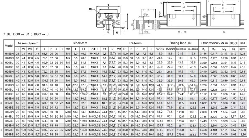 Bảng Thông Số Kỹ Thuật Con Trượt Đài Loan STAF BGCH
