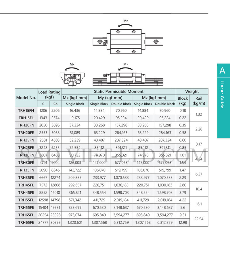Bảng Thông Số Kỹ Thuật Con Trượt Đài Loan TBI TRH FL-FN