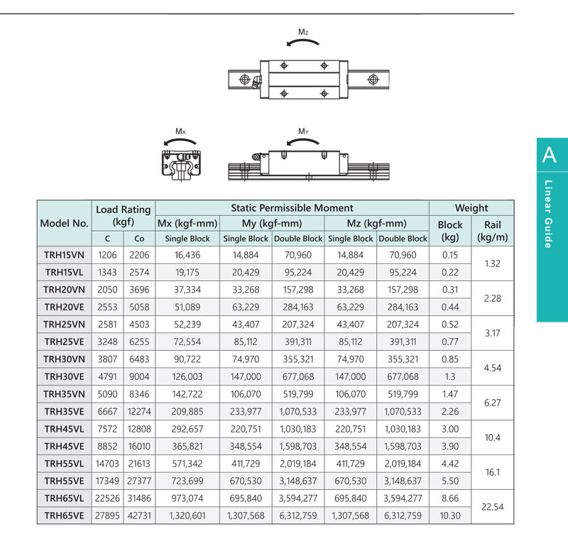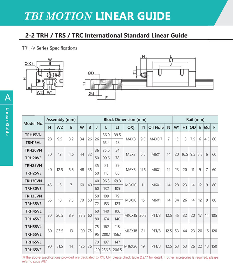 Con Trượt Đài Loan TBI TRH 15, 20, 25, 30, 35, 45 (VL/VN)