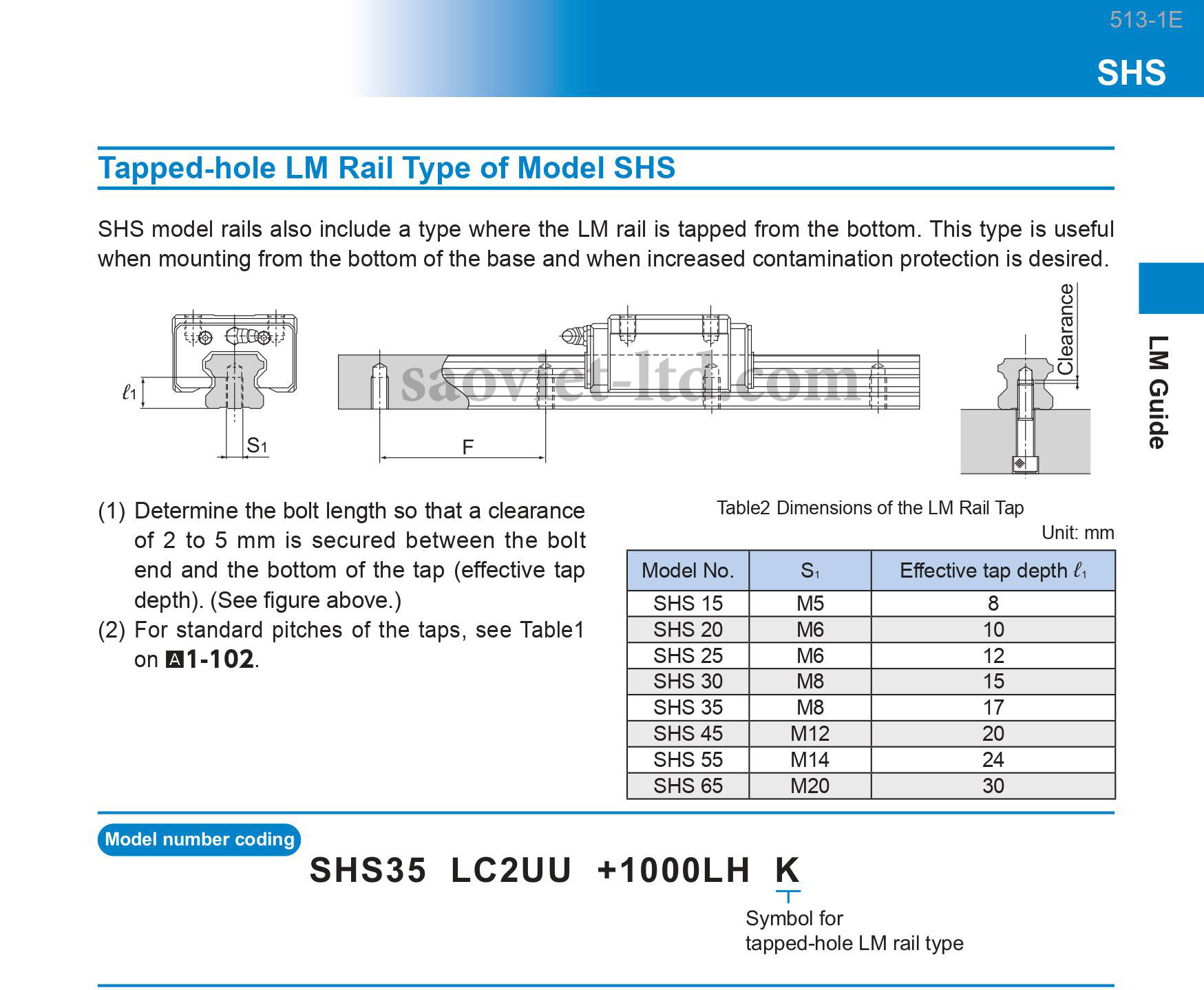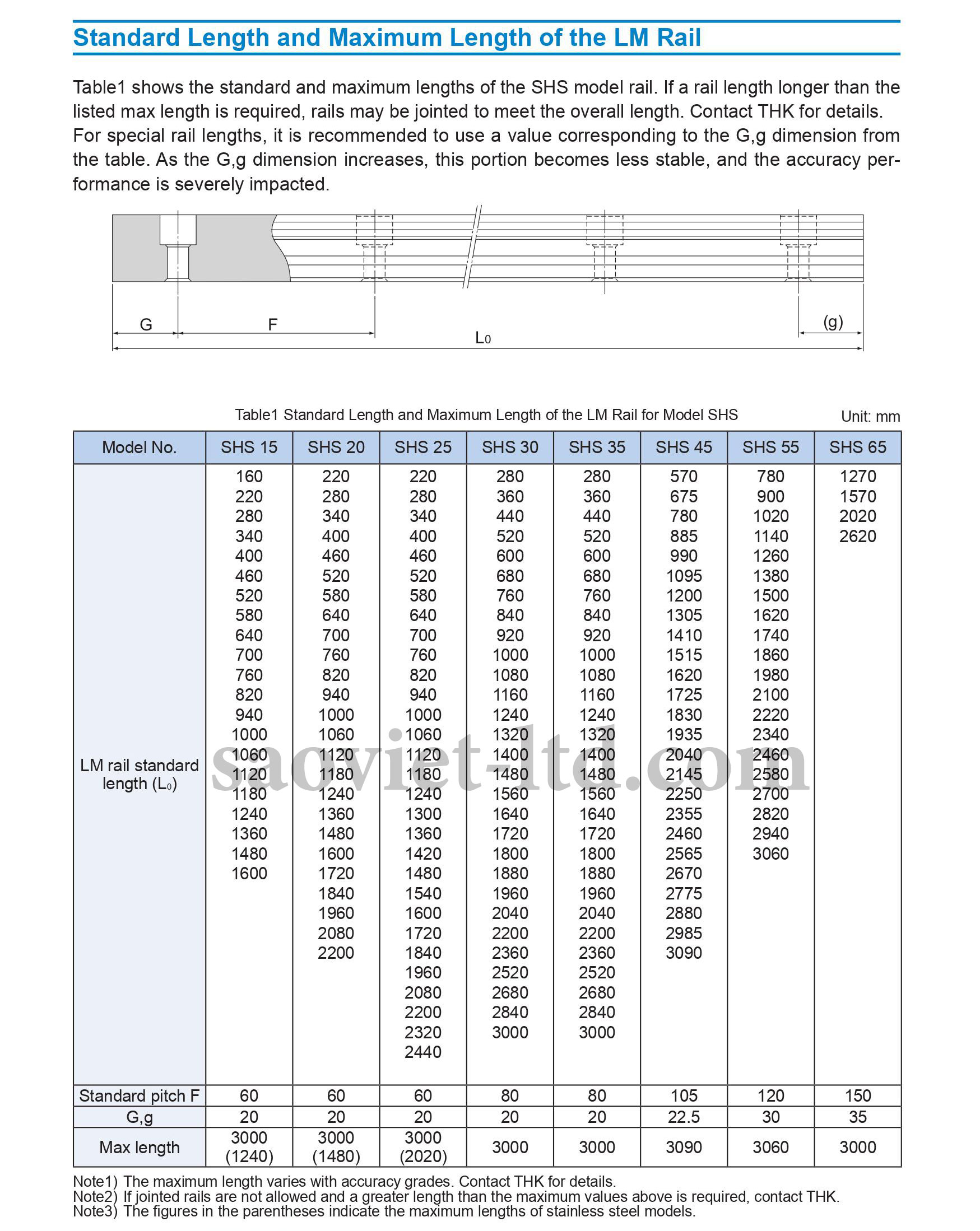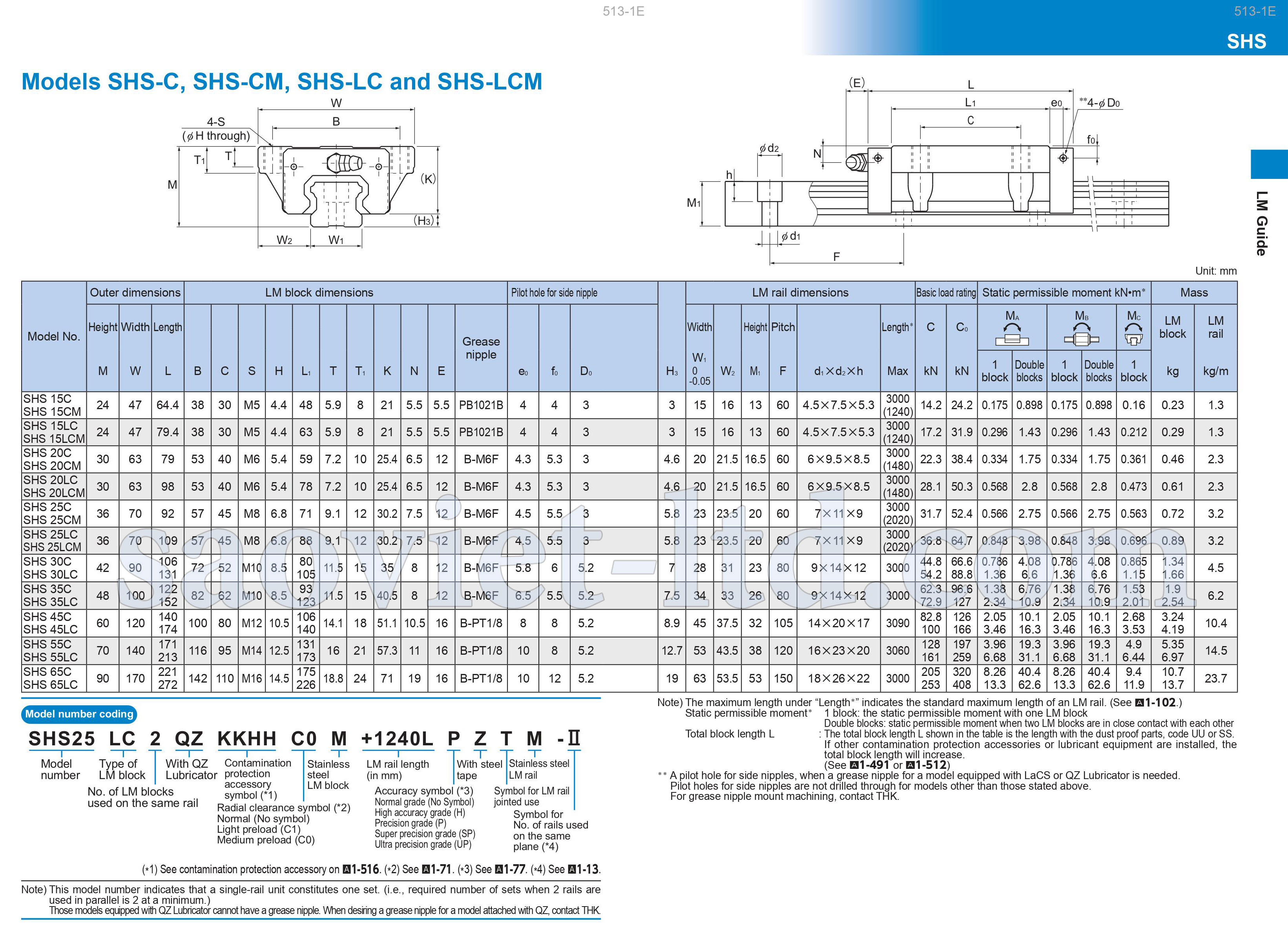 Thông số kỹ thuật con trượt vuông THK (THK SHS)