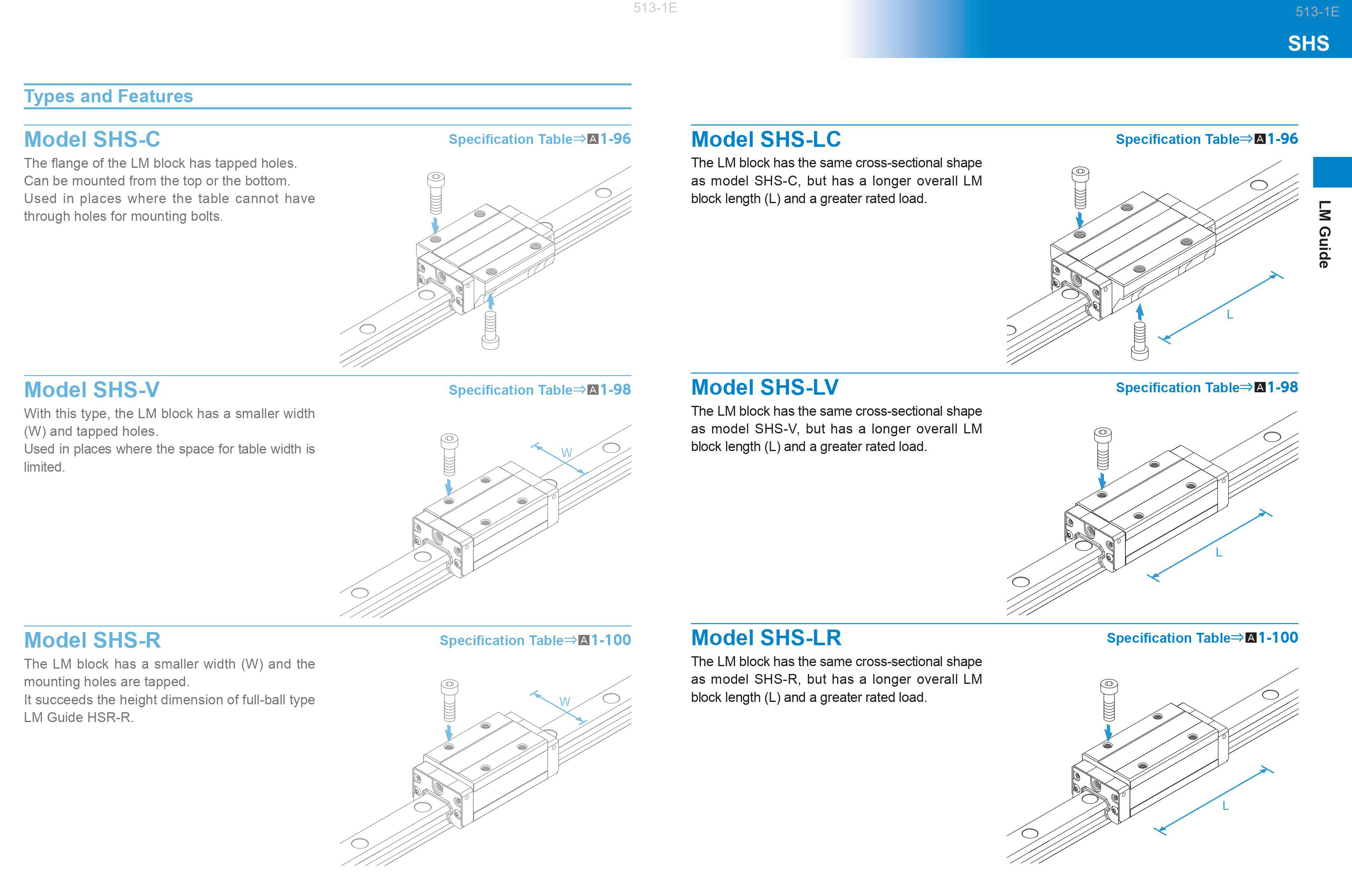 SHS-LC : SHS15LC, SHS20LC, SHS25LC, SHS30LC, SHS45LC, SHS55LC, SHS65LC
