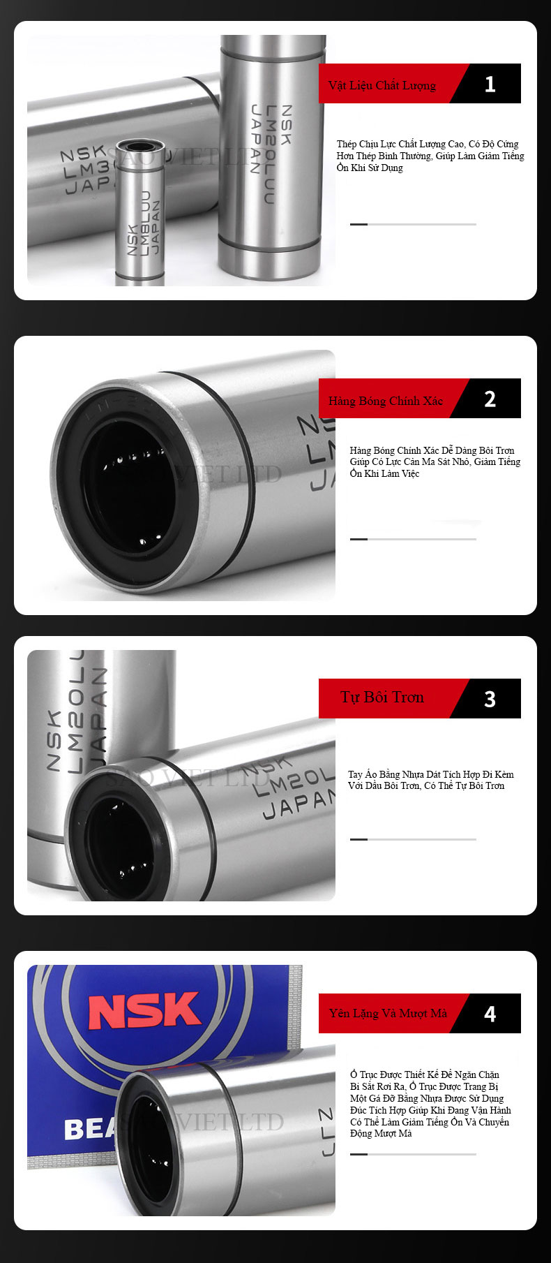 Con Trượt Tròn Loại Dài LMLUU NSK nhập khẩu vòng bi mở rộng tuyến tính LM6 8 10 12 13 16 20 25 30 35 40 50 60LUU