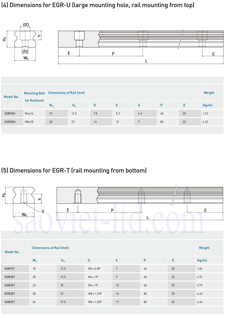 THÔNG SỐ CỦA RAY TRƯỢT CHO DÒNG CON TRƯỢT EGW15CA, EGW20CA, EGW25CA, EGW30CA, EGW35CA