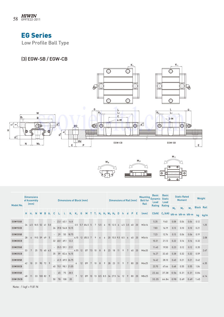 Thanh trượt Hiwin, con trượt Hiwin EGW15CB, EGW20CB, EGW25CB, EGW30CB, EGW35CB được thiết kế có độ cứng cao và khả năng chịu tải cao, có khả năng load tải trọng theo bốn hướng (lên/ xuống/ phải/ trái) và khả năng tự điều chỉnh để giảm rung động do lỗi gá đặt. Ngoài ra thanh trượt Hiwin, con trượt Hiwin EGH còn có ưu điểm: