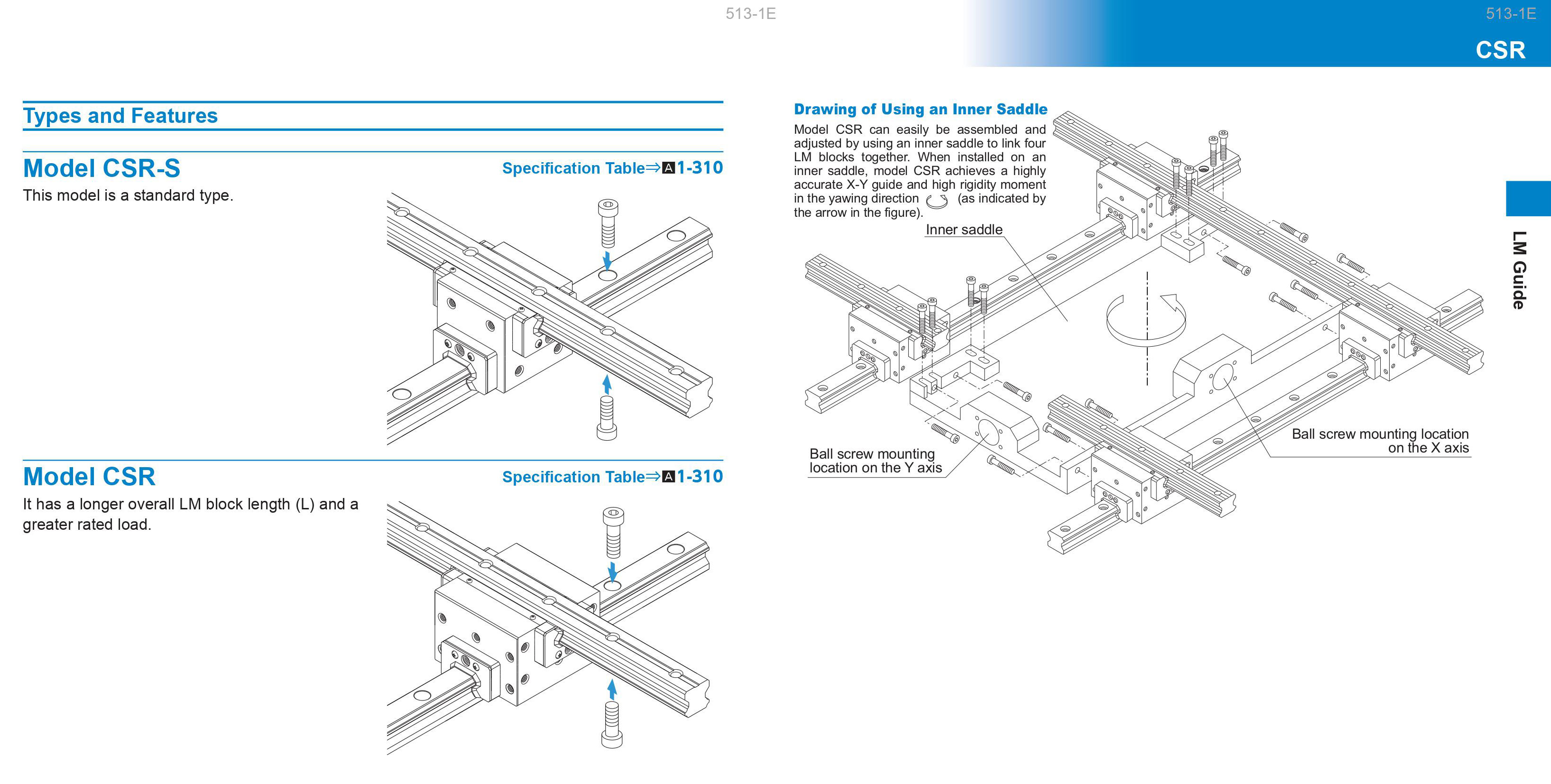Độ cứng của khối LM cao hơn 50% so với sự kết hợp của hai khối LM HSR được gắn chặt với nhau bằng bu lông. Do đó, CSR là Hướng dẫn LM tối ưu để xây dựng bảng X-Y yêu cầu độ cứng cao