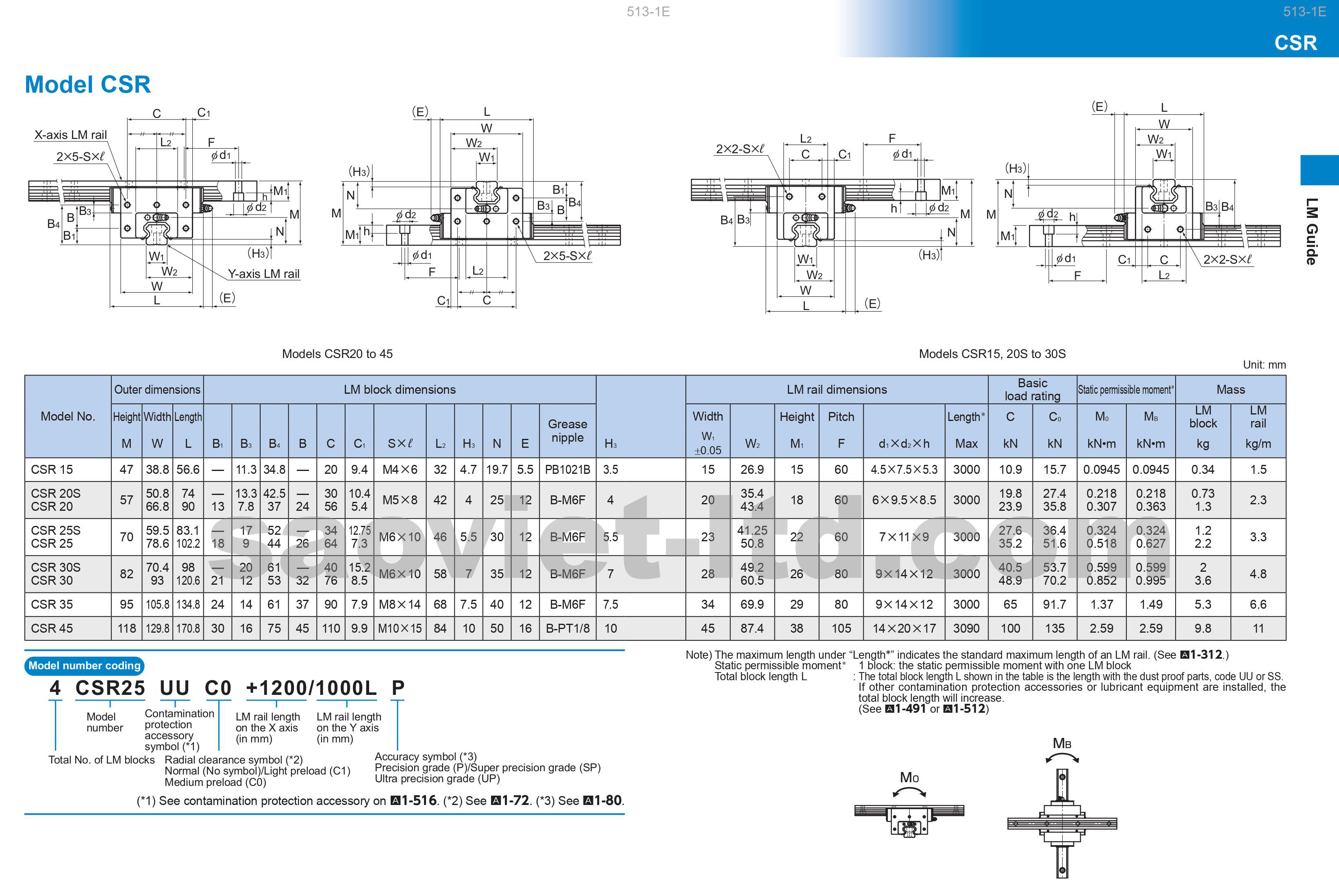 Thông số kỹ thuật con trượt vuông THK (THK CSR)