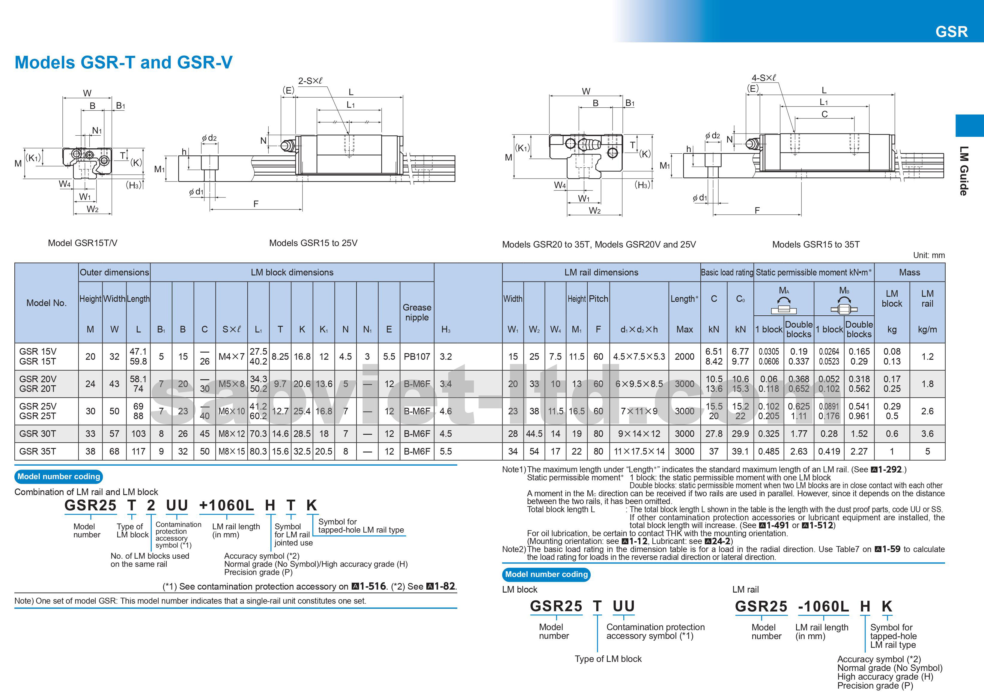 Thông số kỹ thuật con trượt vuông THK (THK GSR)