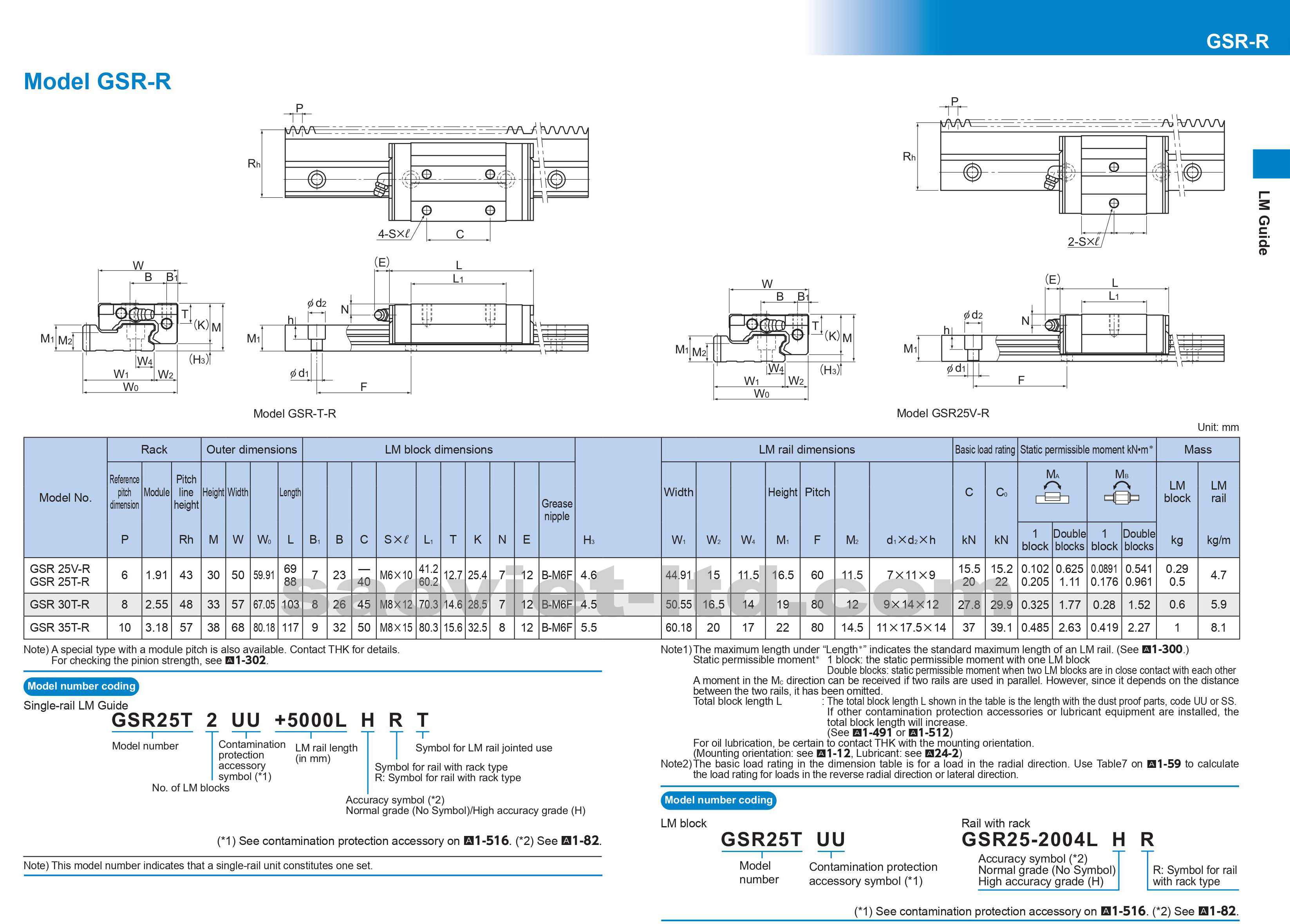 Thông số kỹ thuật con trượt vuông THK (THK GSR-R)