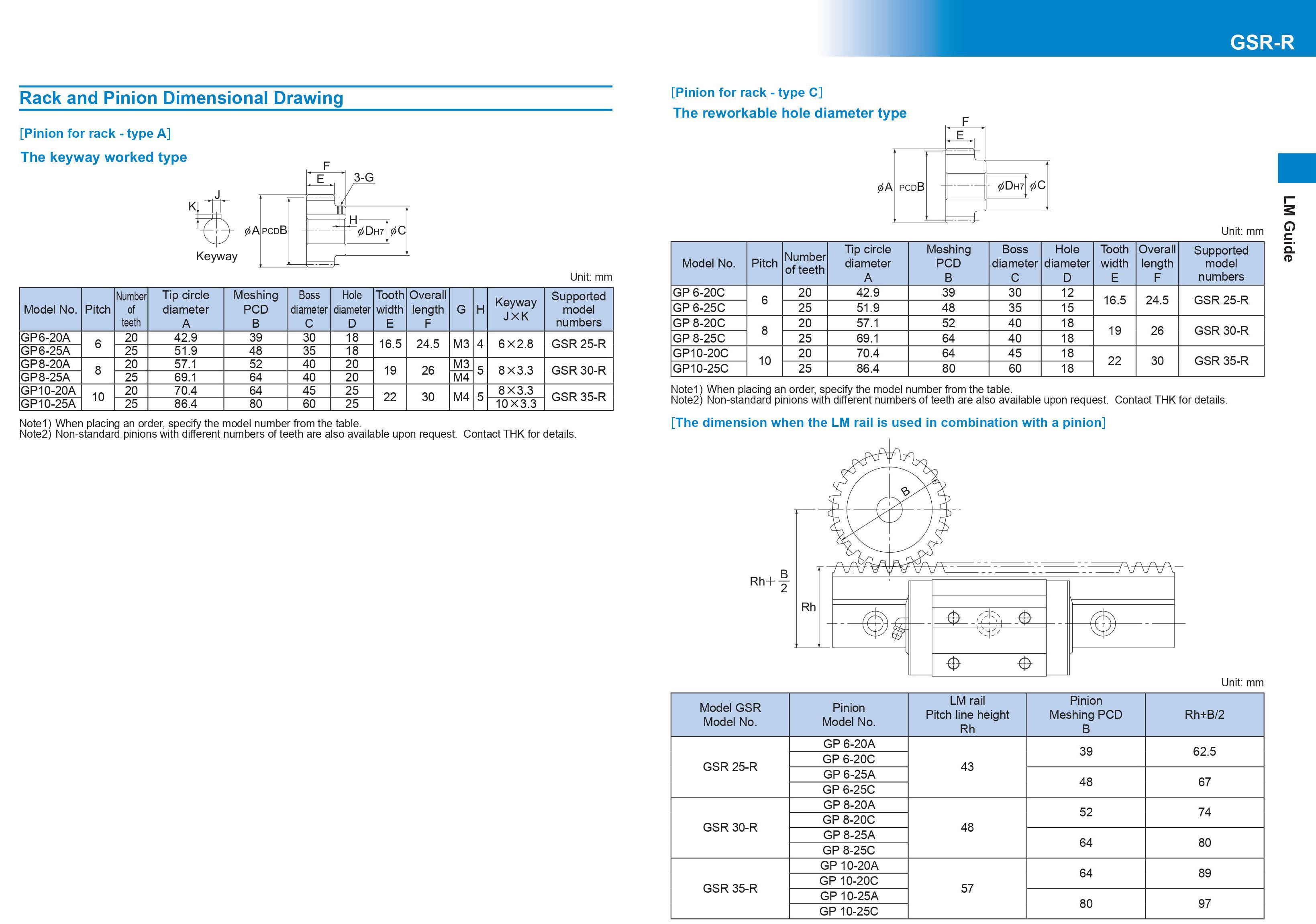 Khoảng cách di chuyển mỗi vòng của bánh răng được quy định bởi giá trị số nguyên. Điều này giúp dễ dàng tính toán khoảng cách di chuyển trên mỗi xung khi Thanh dẫn hướng LM được sử dụng kết hợp với động cơ bước hoặc động cơ servo