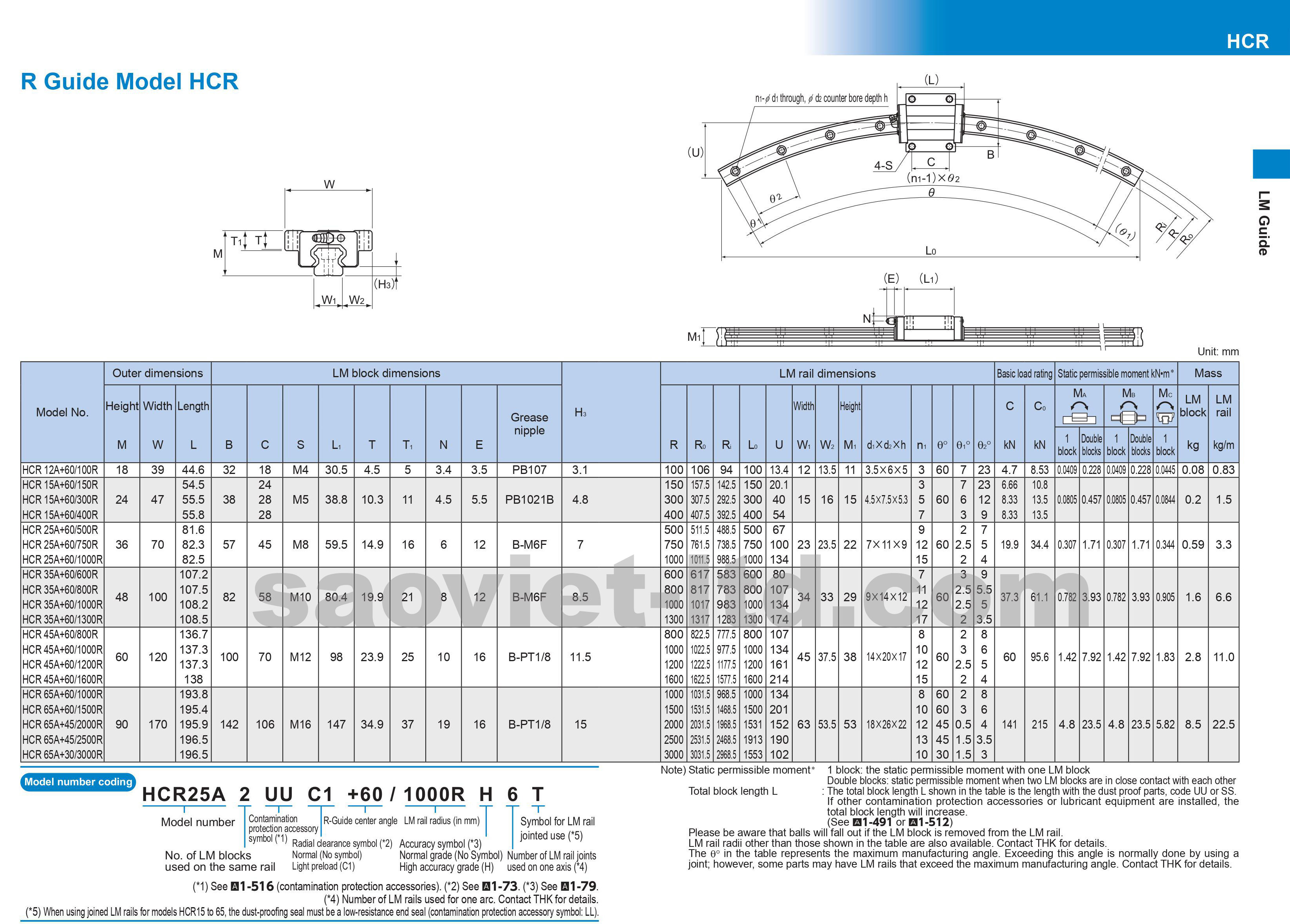 Thông số kỹ thuật con trượt vuông THK (THK HCR)