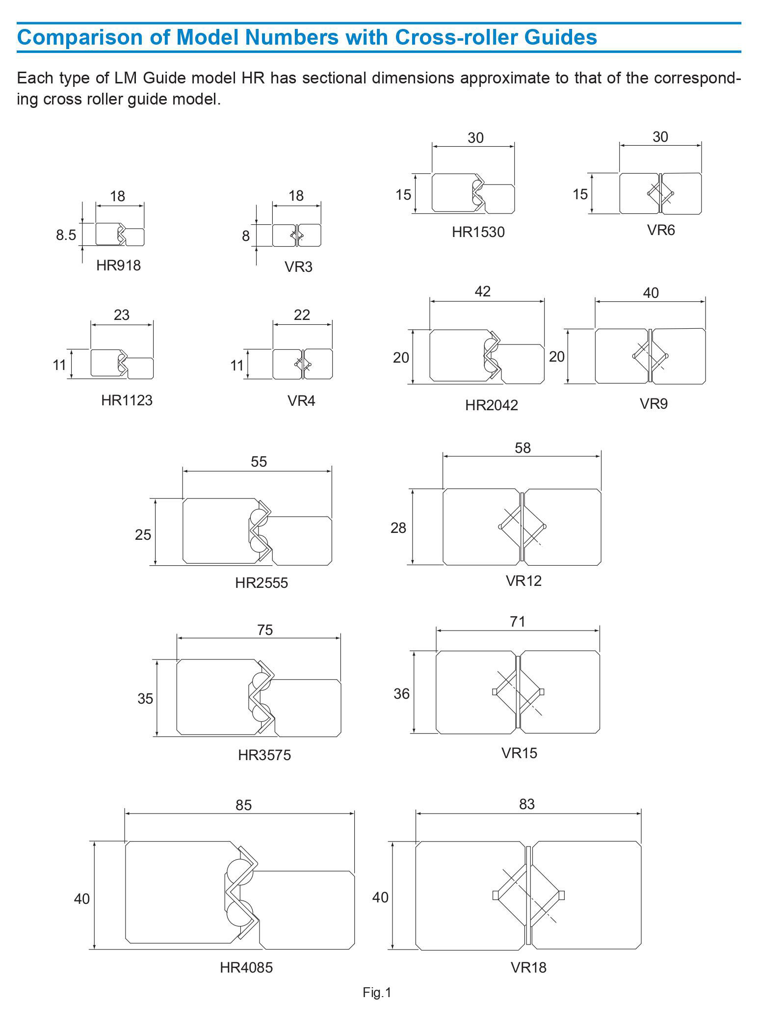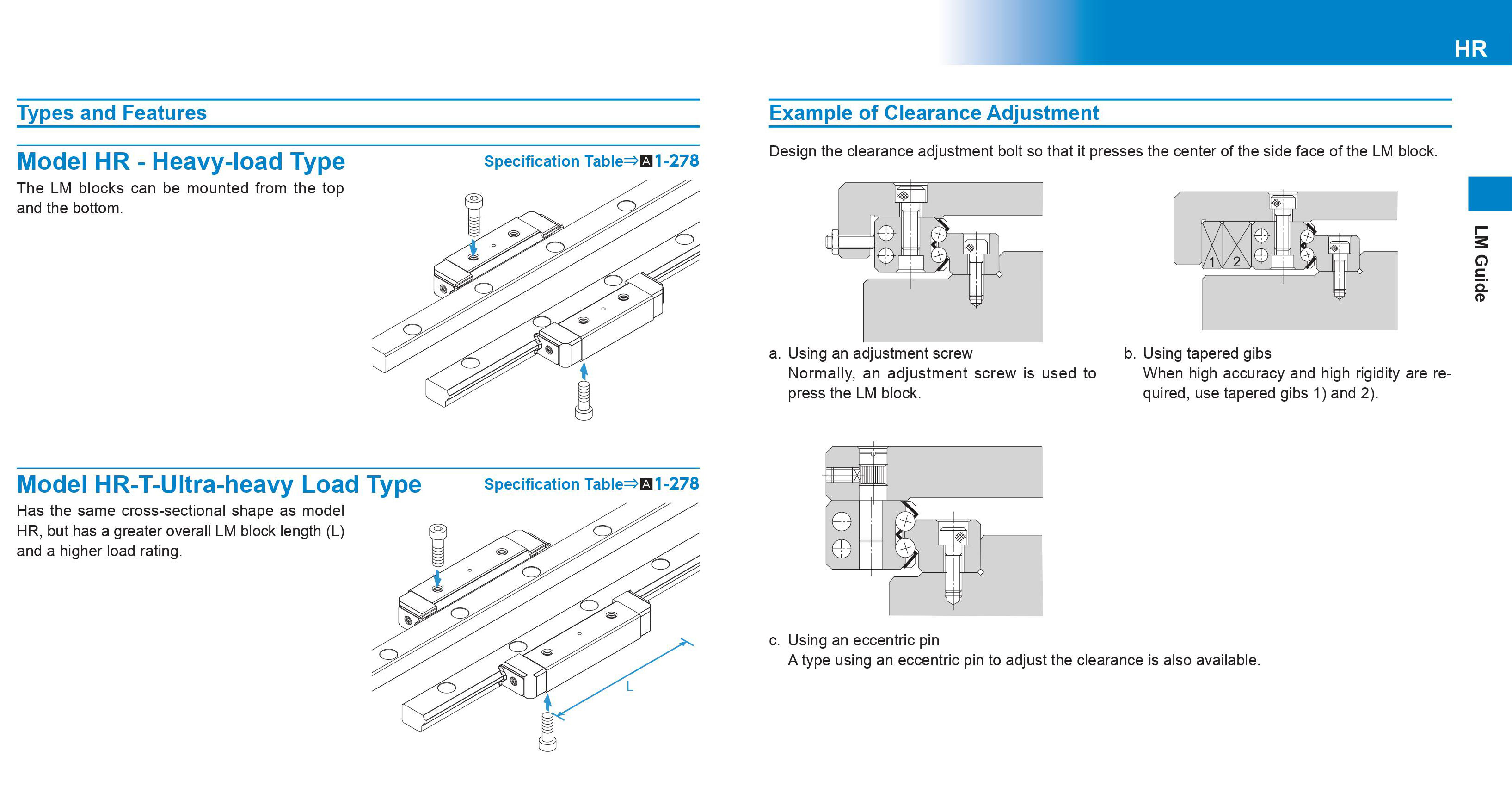Model HR dễ điều chỉnh khe hở hơn và đạt được độ chính xác hơn so với thanh dẫn hướng con lăn chéo