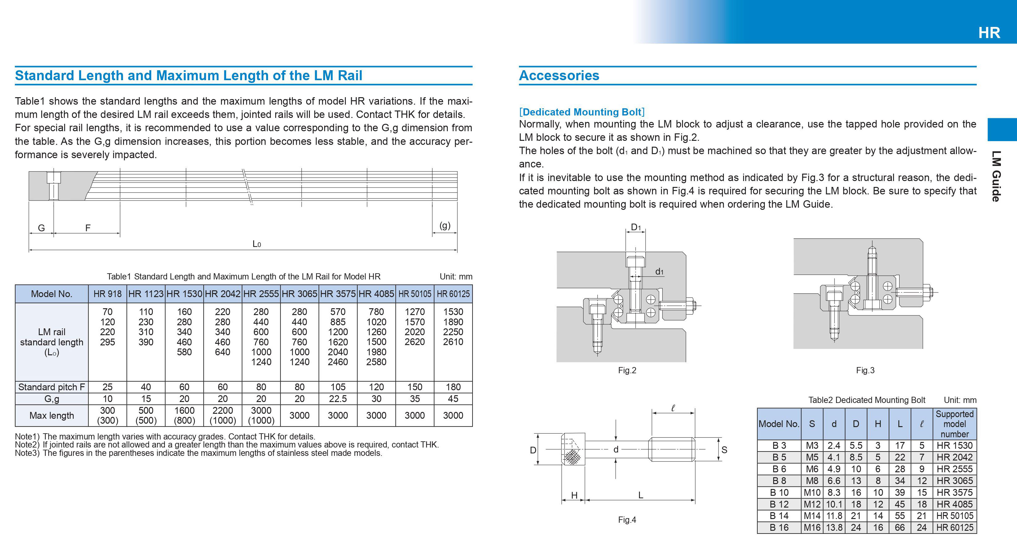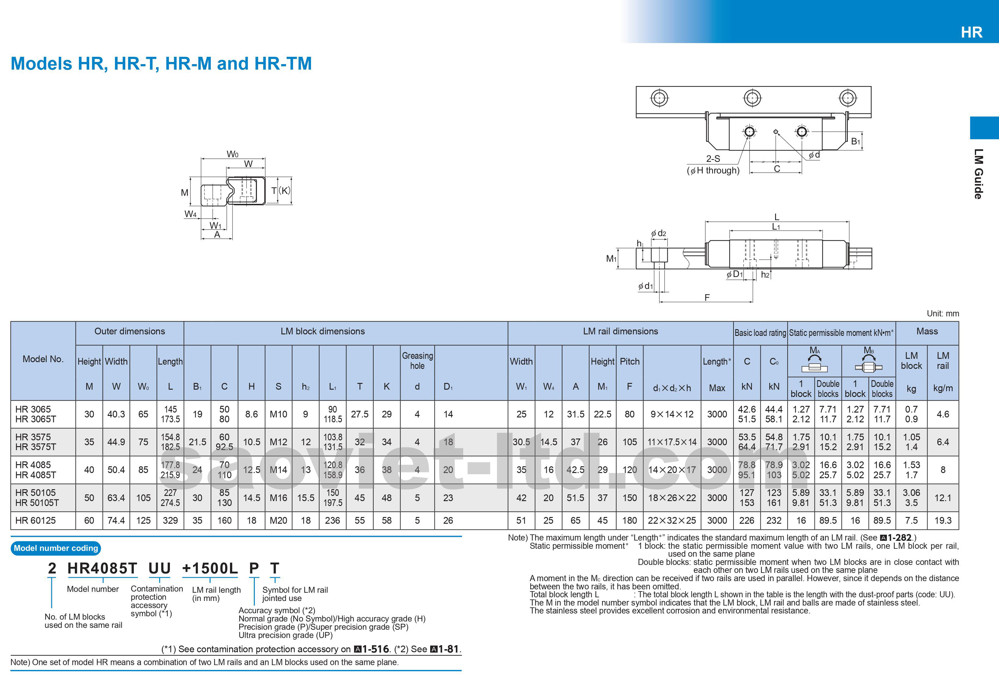 Thông số kỹ thuật con trượt vuông THK (THK HR)