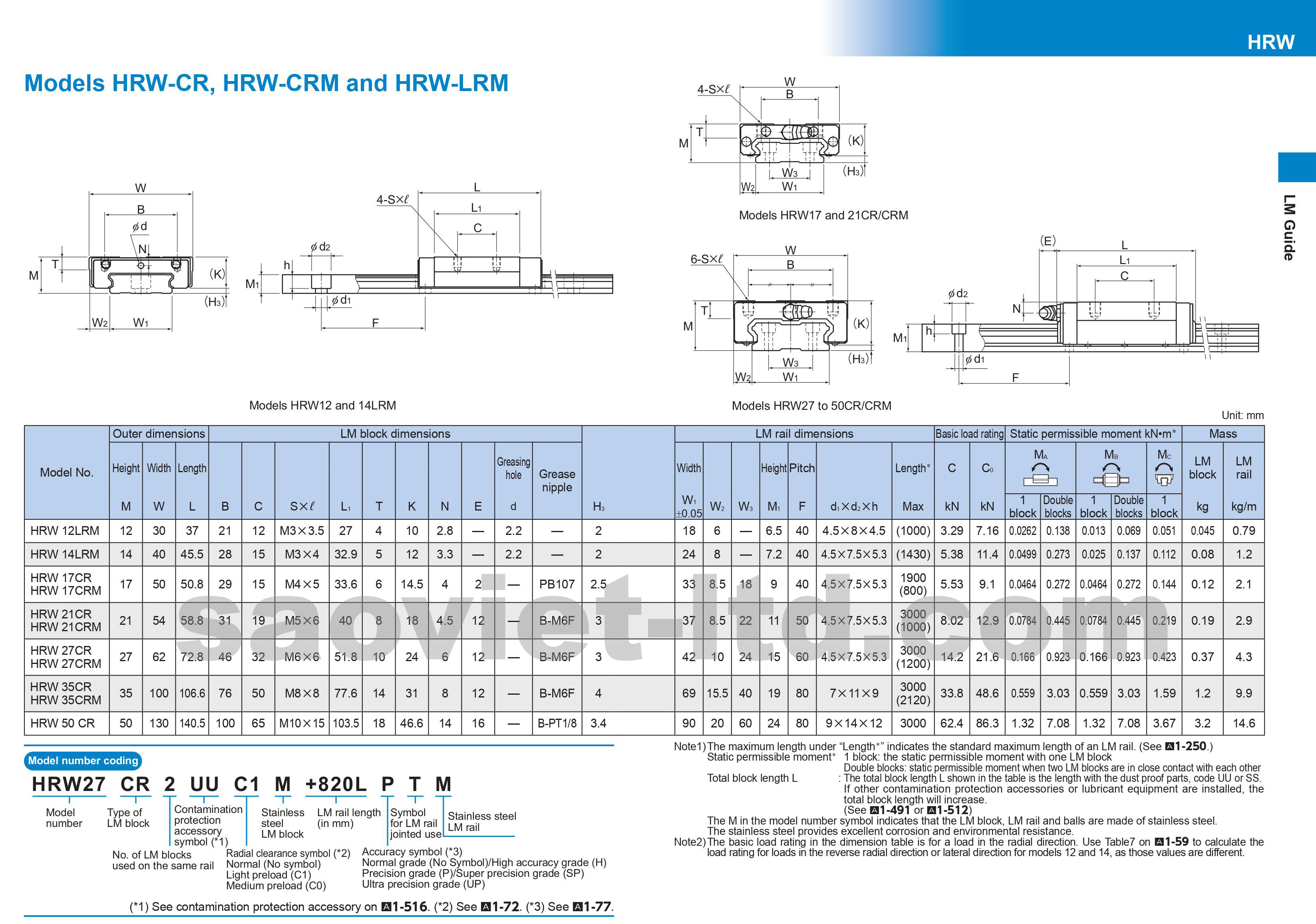 Thông số kỹ thuật con trượt vuông THK (THK SRW)