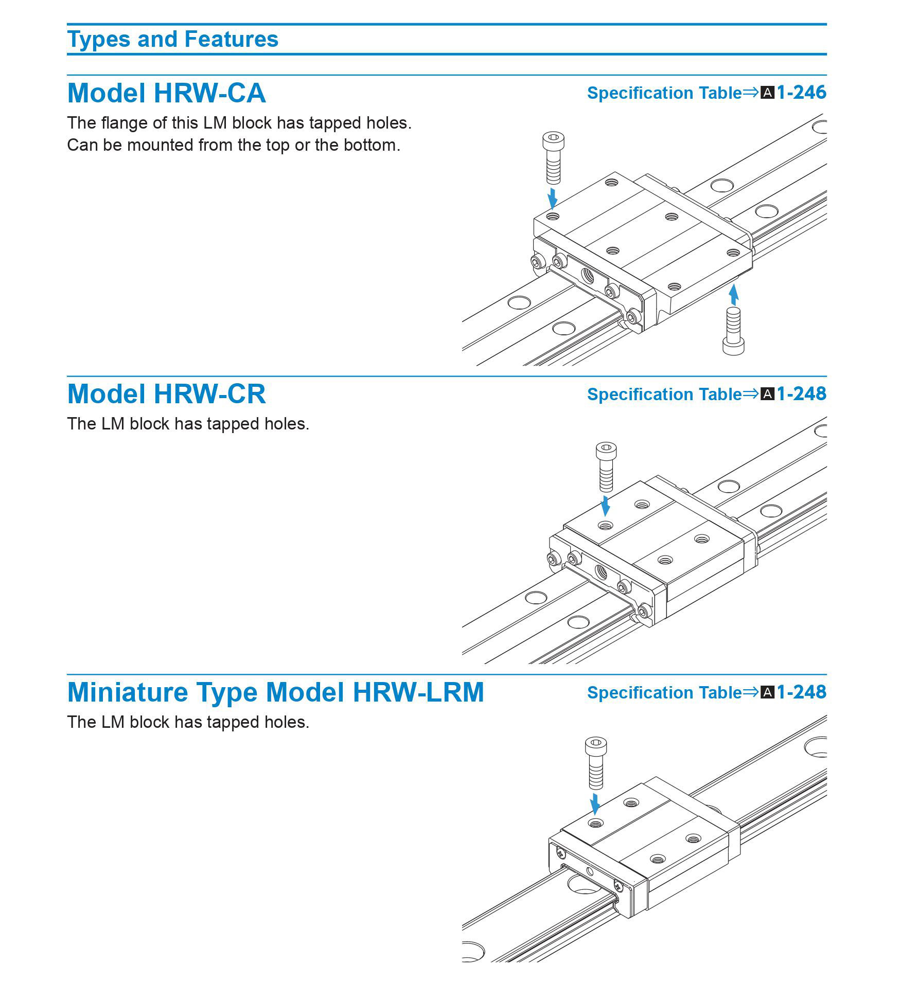 con trượt vuông THK (THK HRW ) có đặc tính kĩ thuật vượt trội sau: