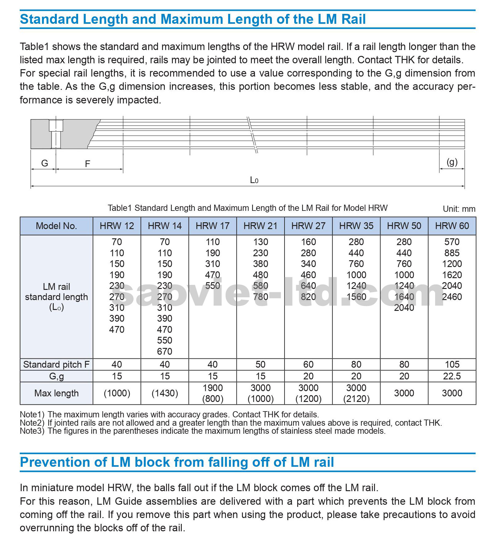 Thông số kỹ thuật con trượt vuông THK (THK SRW)