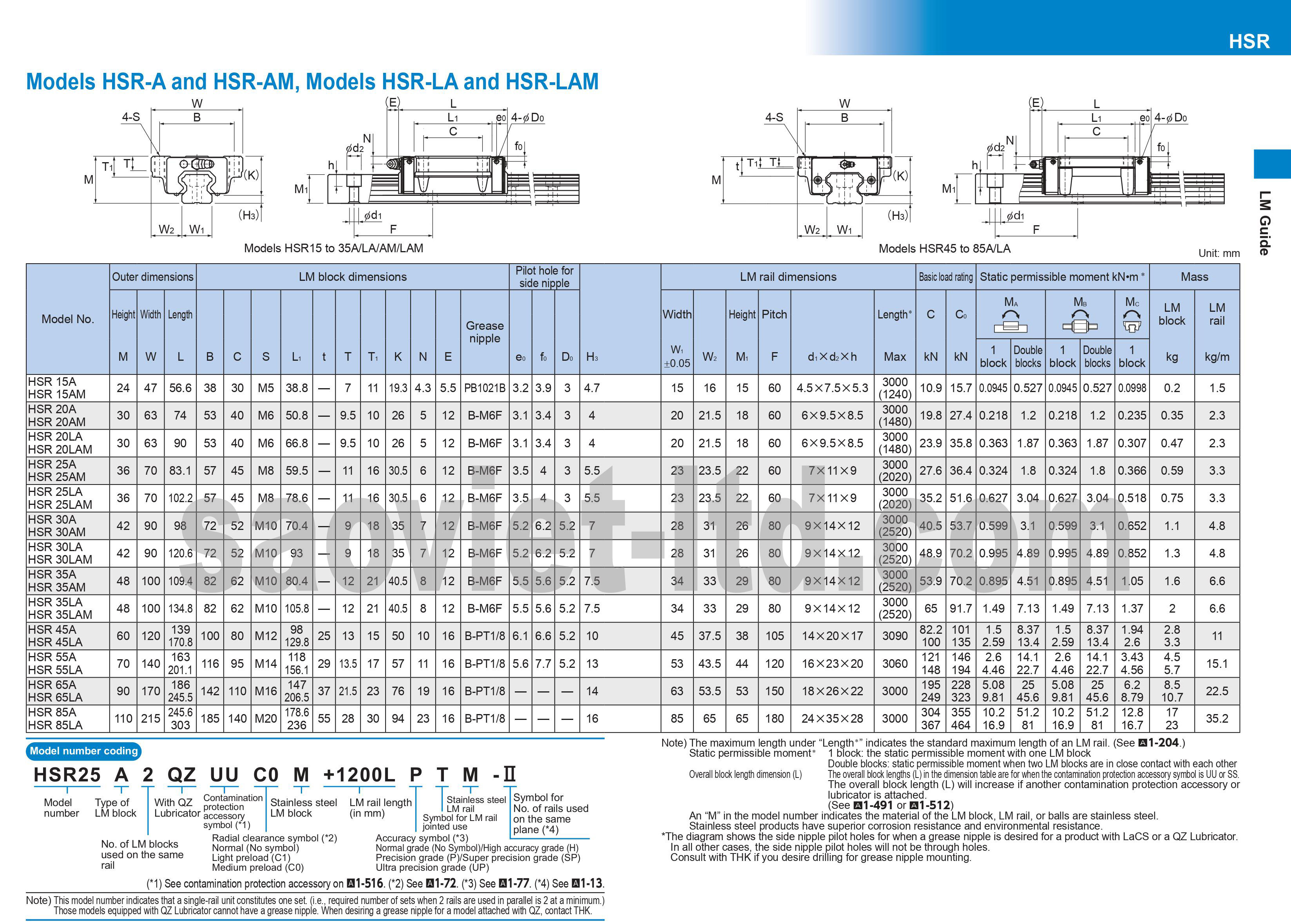 HSR-LAM : HSR15LAM, HSR20LAM, HSR25LAM, HSR30LAM, HSR35LAM