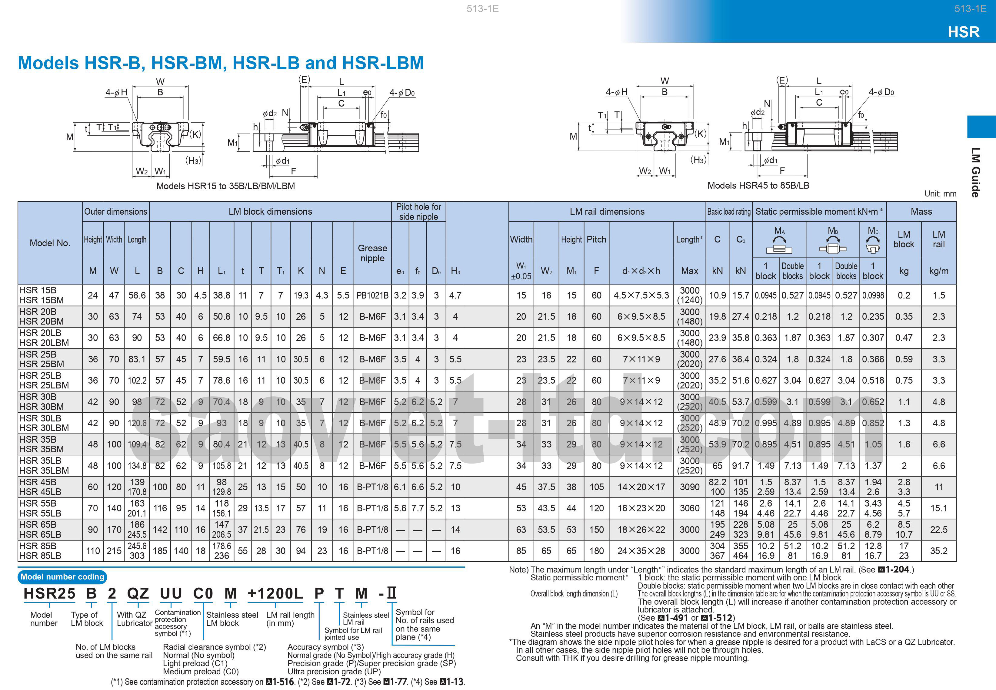 HSR-LBM : HSR15LBM, HSR20LBM, HSR25LBM, HSR30LBM, HSR35LBM