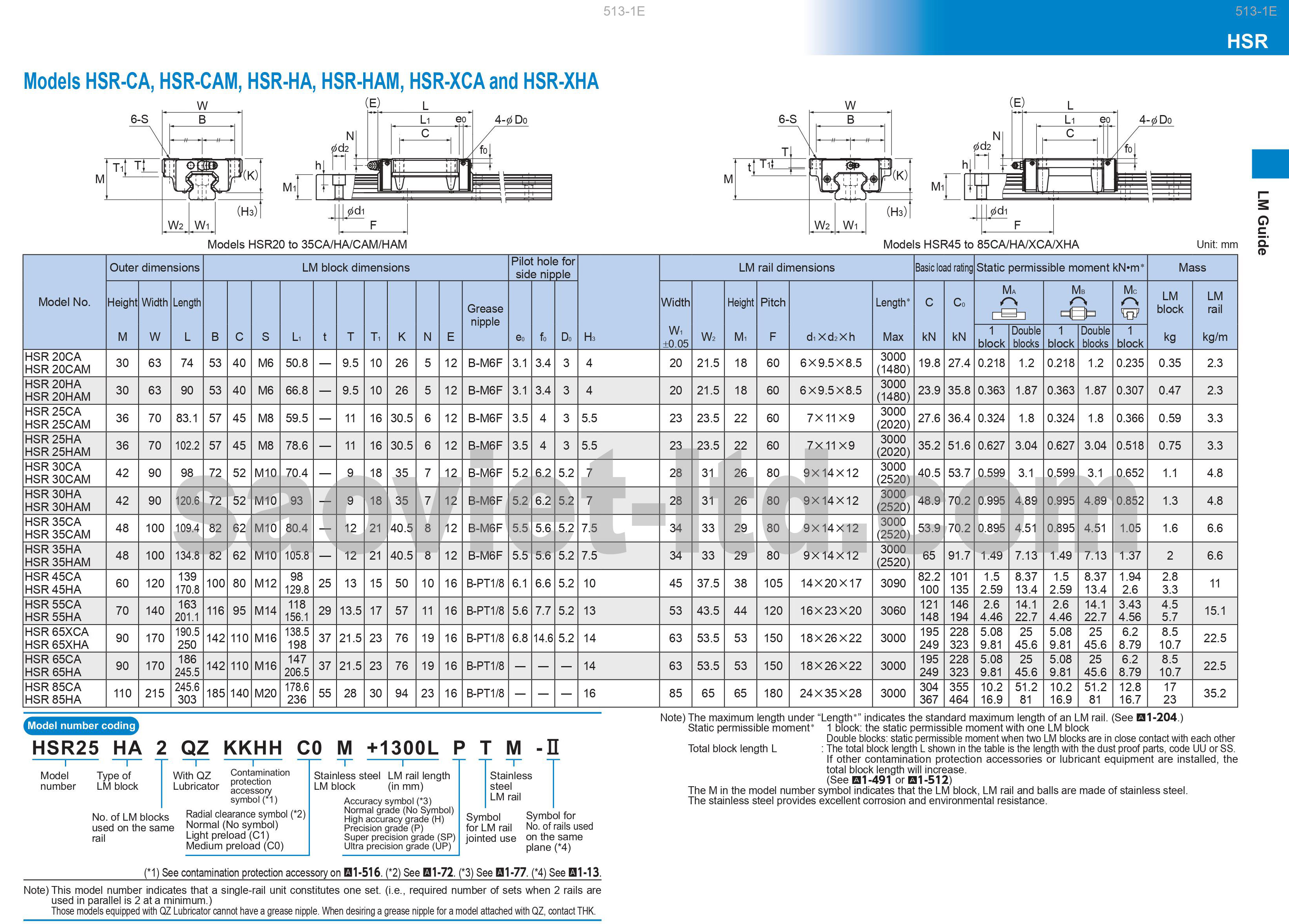 HSR-CA : HSR15CA, HSR20CA, HSR25CA, HSR30CA, HSR35CA, HSR45CA, HSR55CA, HSR65CA, HSR85CA