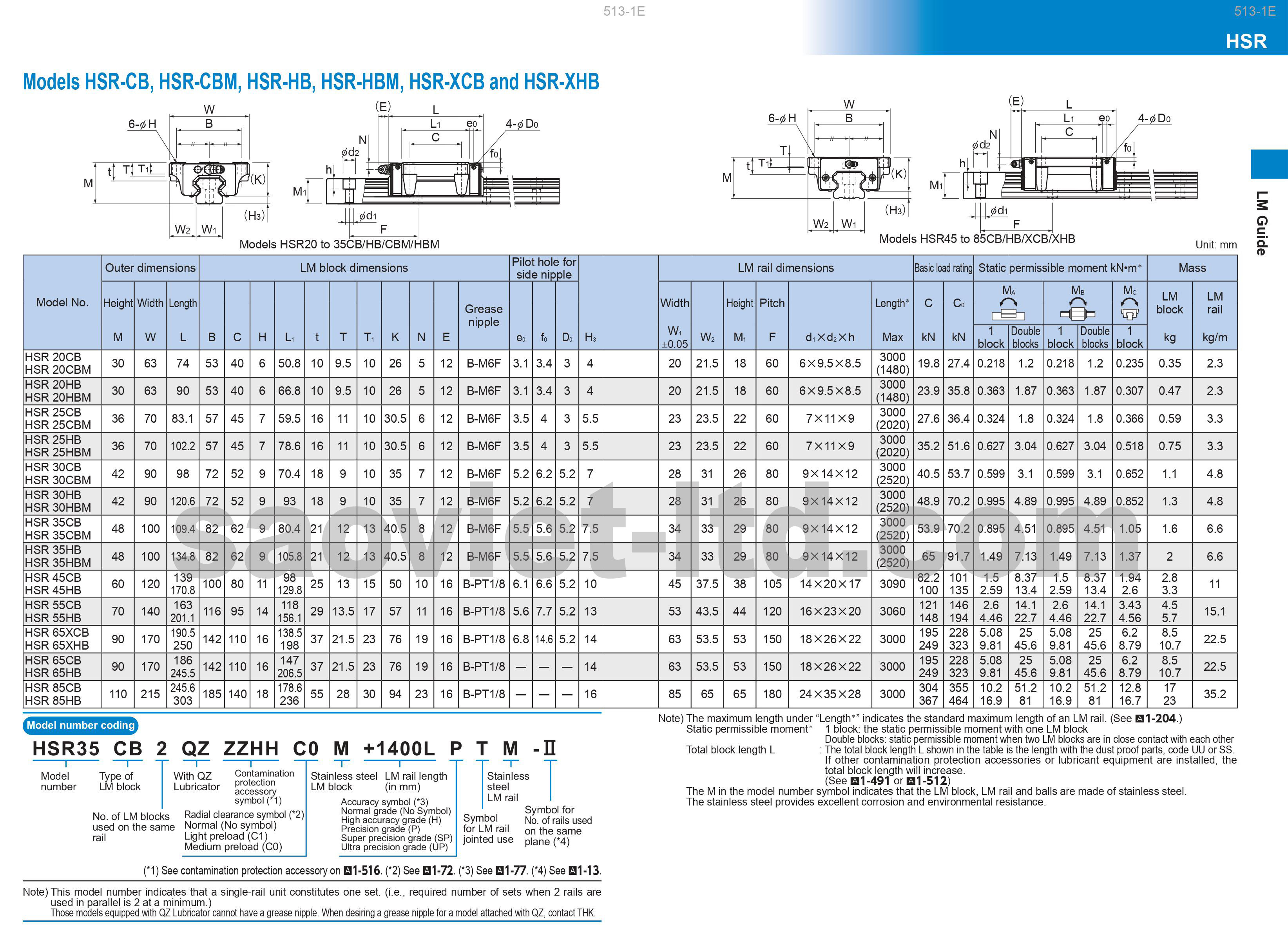 HSR-HB : HSR15HB, HSR20HB, HSR25HB, HSR30HB, HSR35HB, HSR45HB, HSR55HB, HSR65HB, HSR85HB