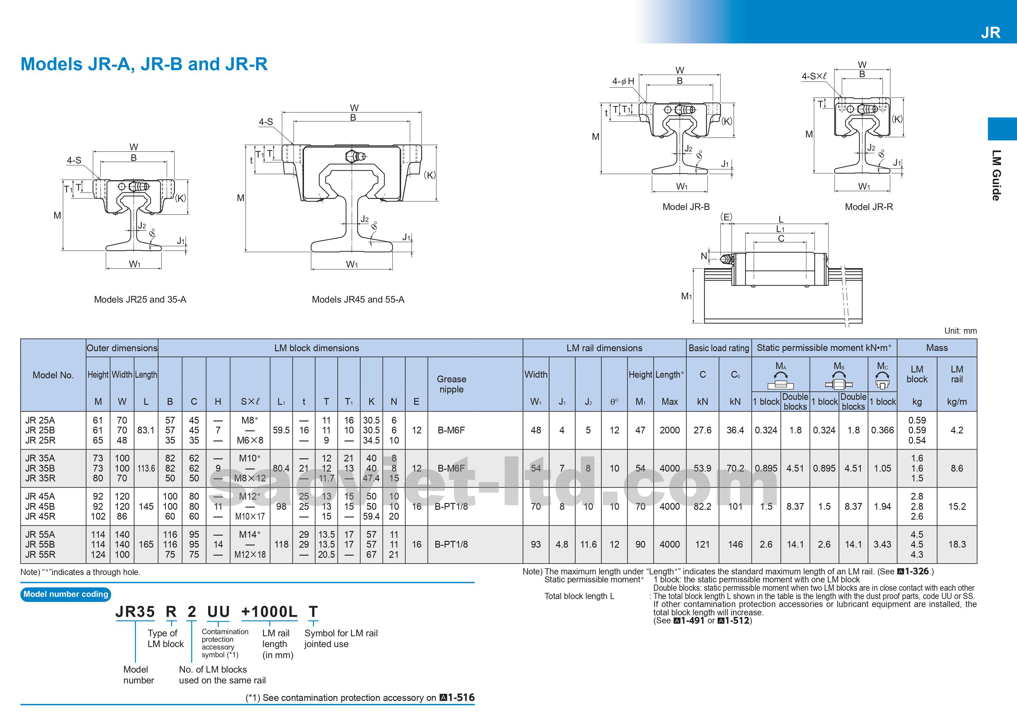 Cấu Trúc Và Tính năng chính của dòng JR - Con trượt vuông THK