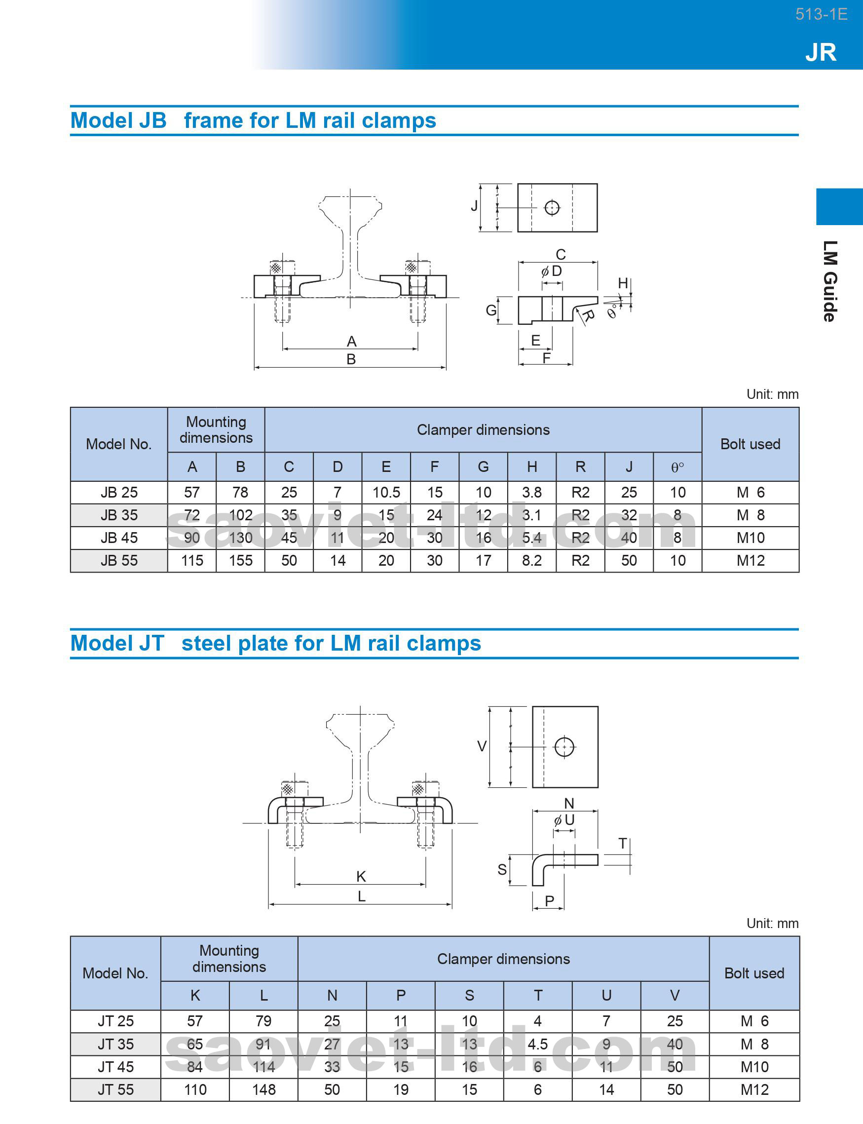 Thông số kỹ thuật con trượt vuông THK (THK JR)