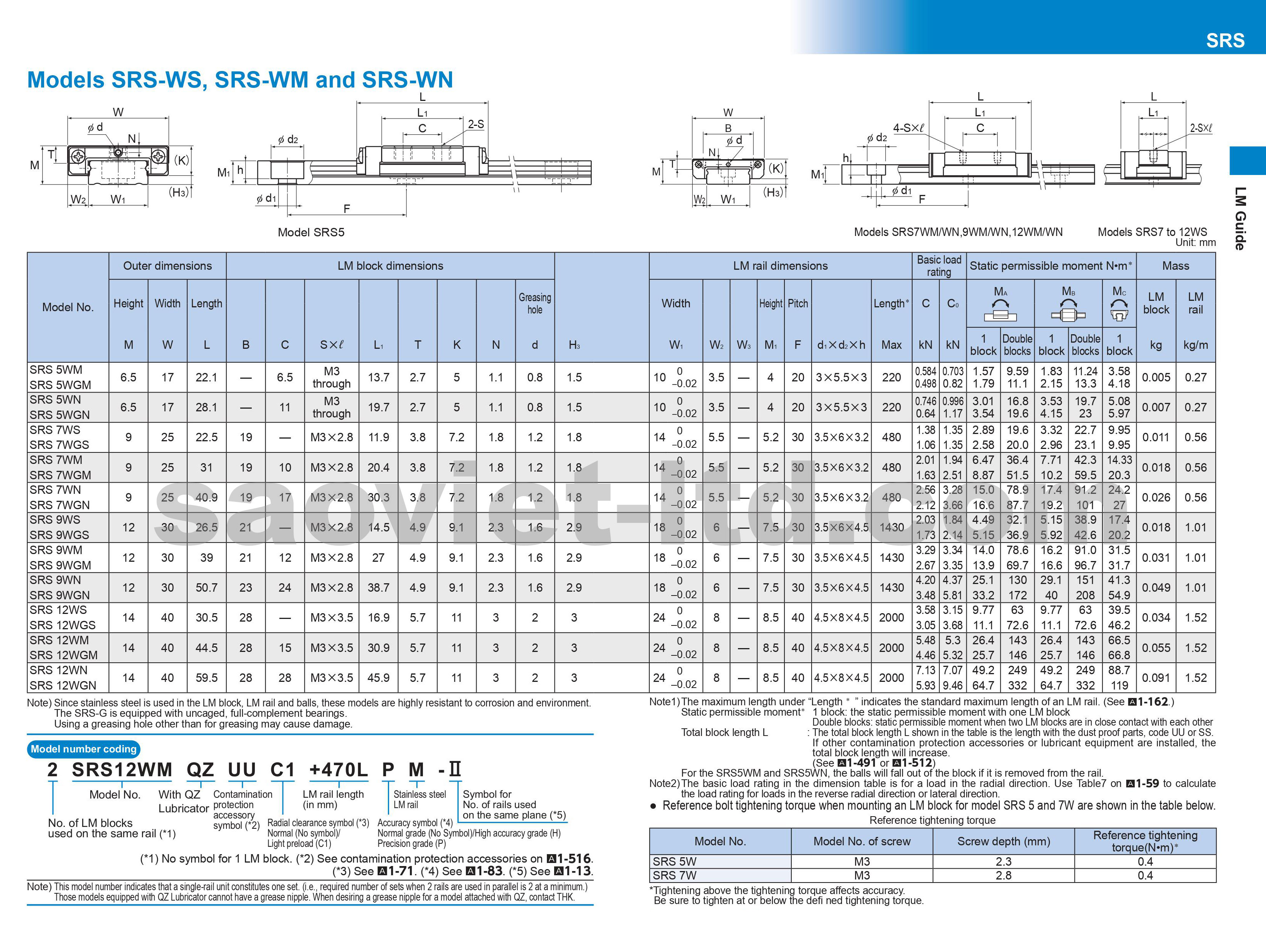 Vì một phần của khối LM (ví dụ: xung quanh lỗ thoát bi) được làm bằng nhựa và được tạo thành thông qua quá trình đúc chèn, SRS là loại Thanh dẫn hướng LM nhẹ, quán tính thấp