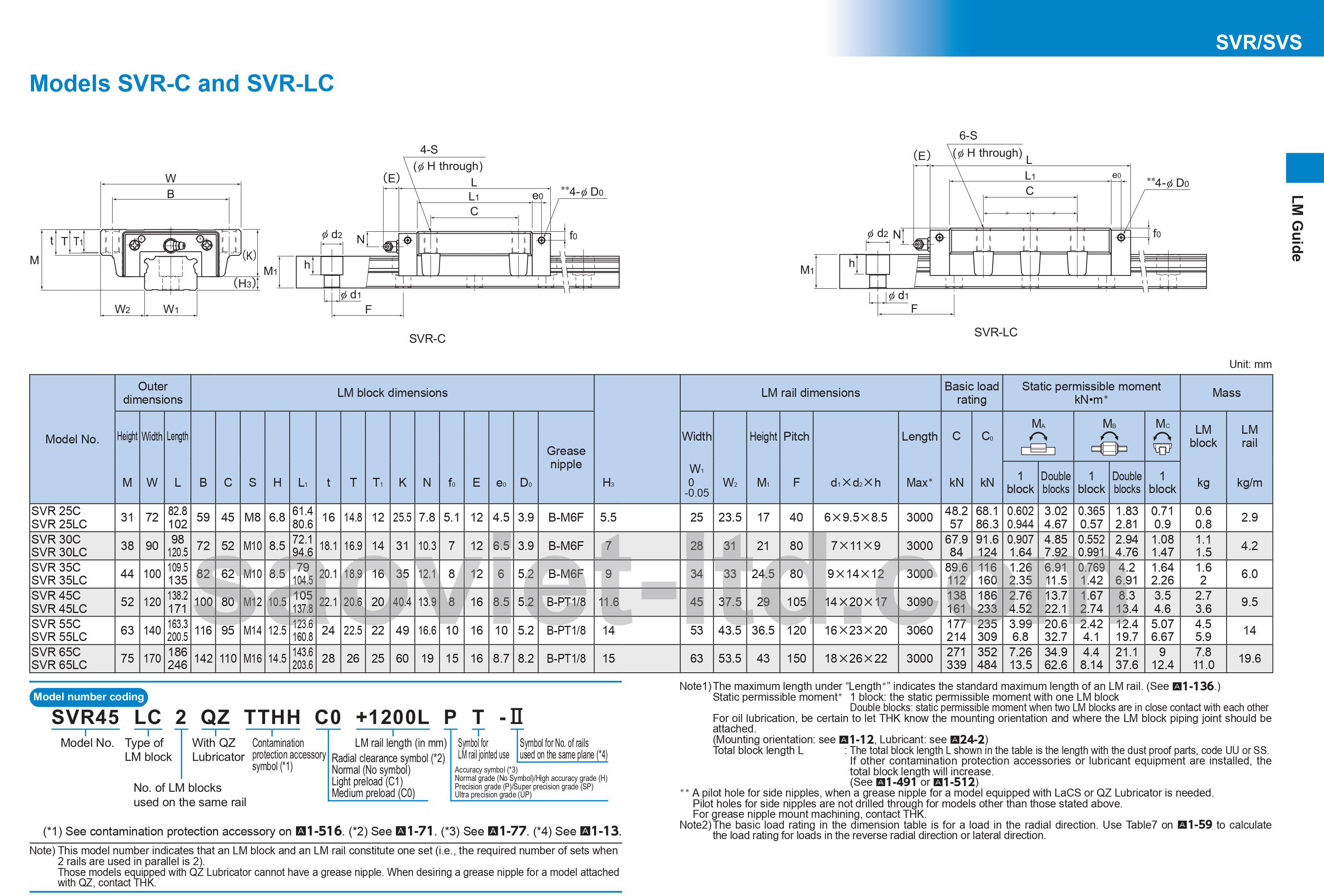 Thông số kỹ thuật con trượt vuông THK (THK SVR)