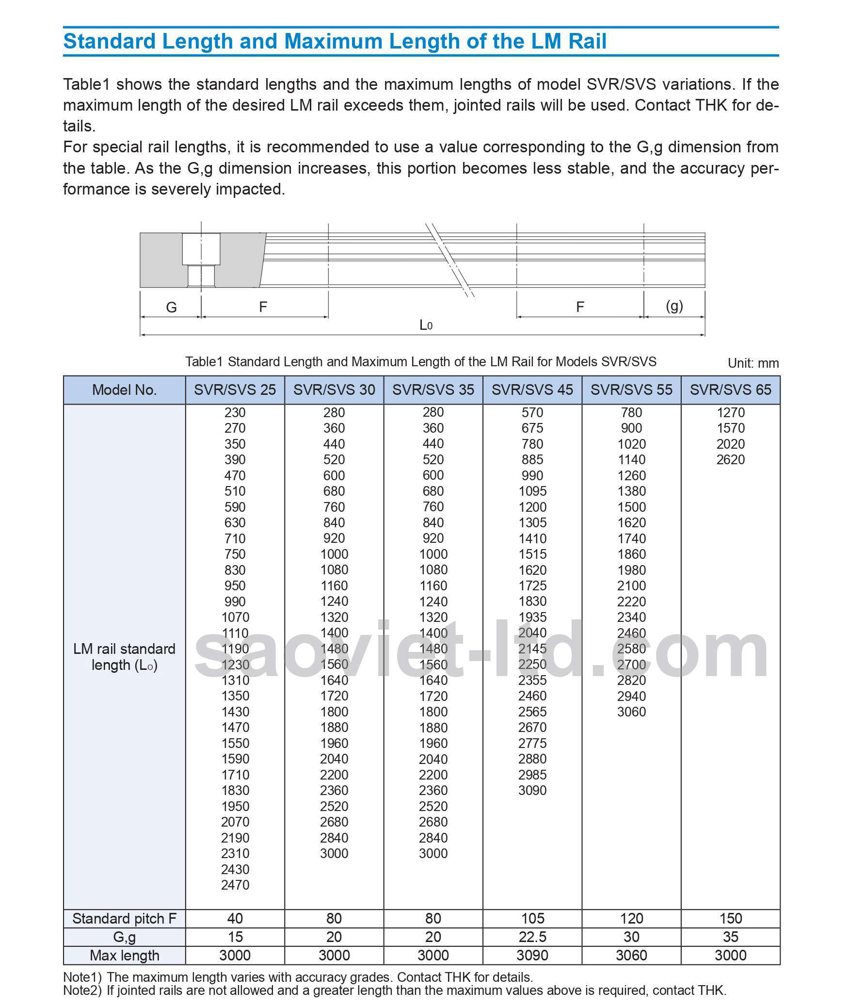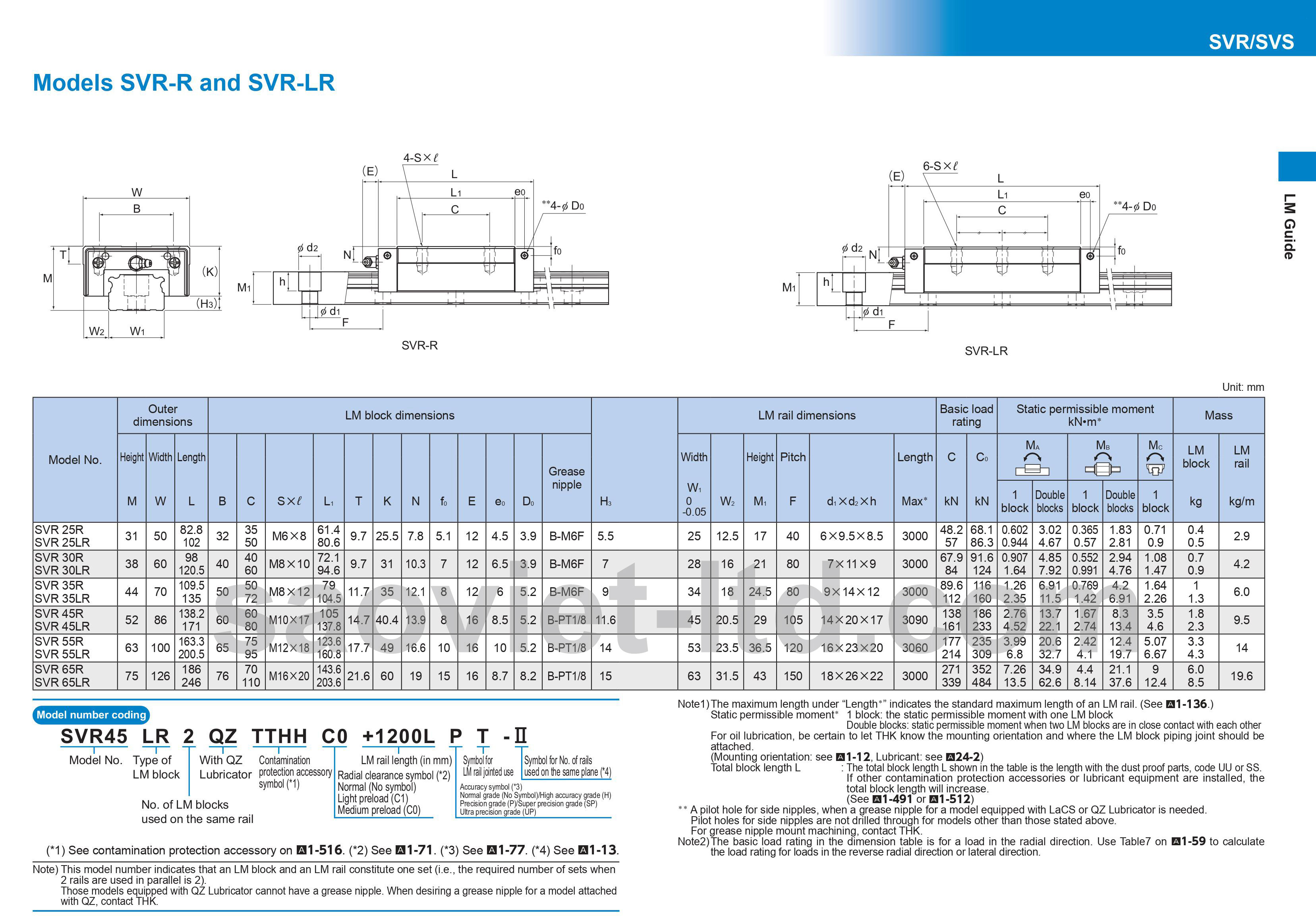 Thông số kỹ thuật con trượt vuông THK (THK SVR)