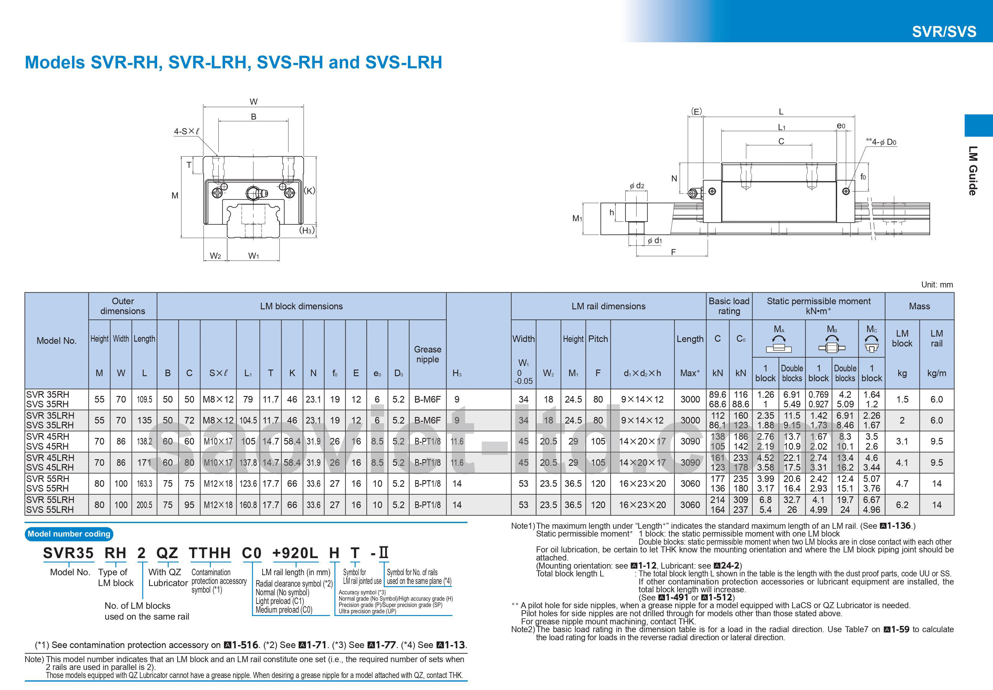 Thông số kỹ thuật con trượt vuông THK (THK SVR)