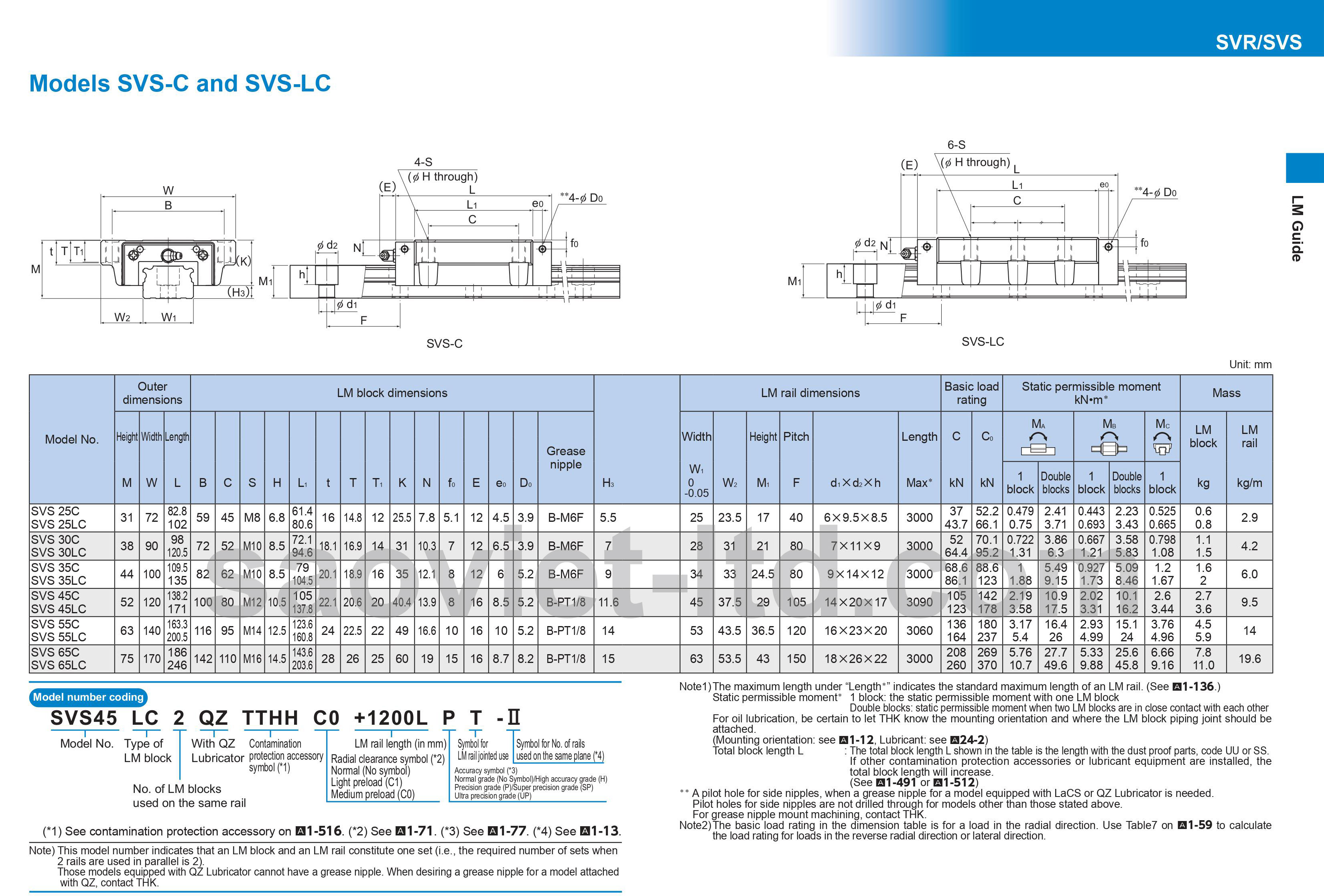 Thông số kỹ thuật con trượt vuông THK (THK SVS)