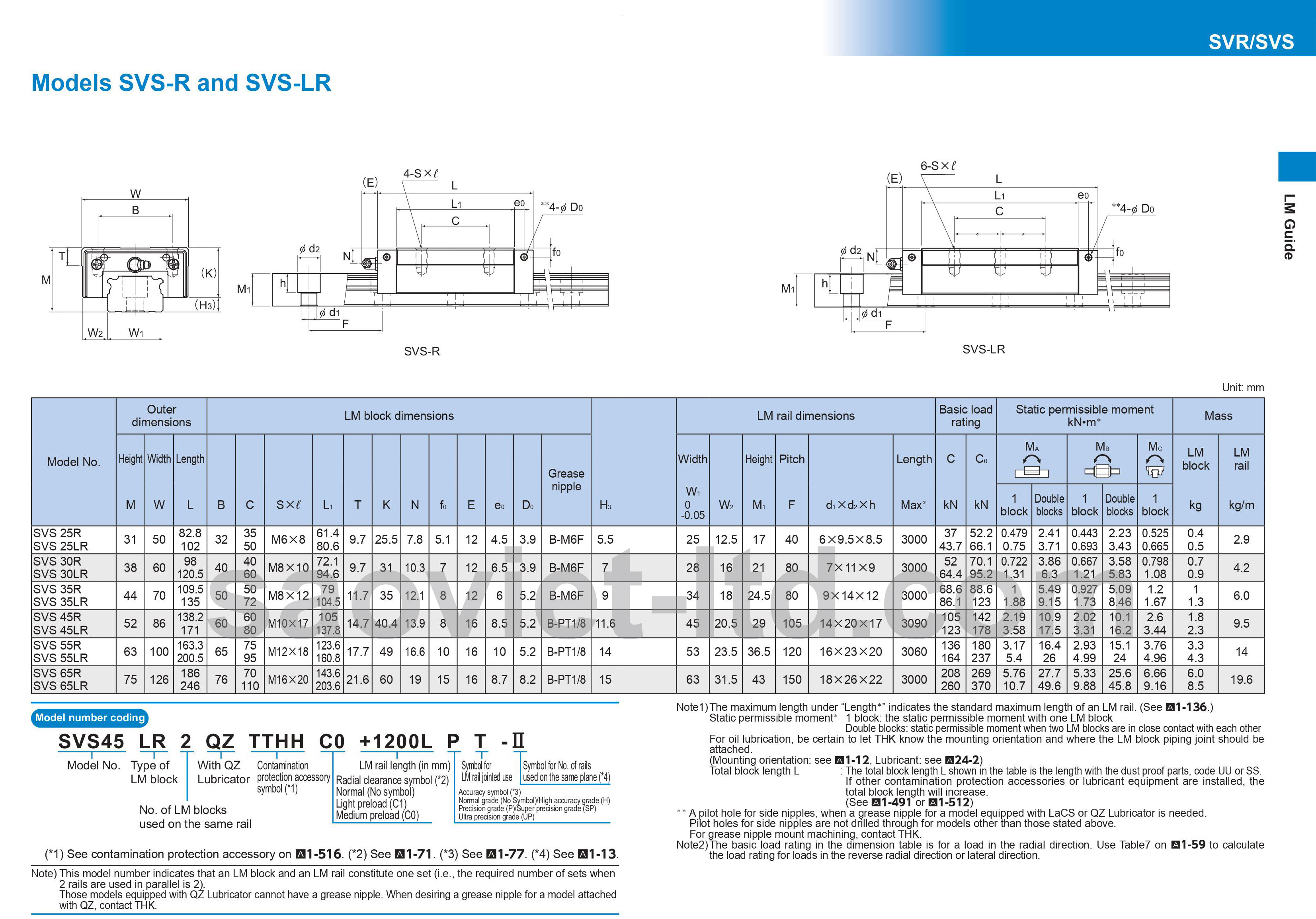 Cấu Trúc Và Tính năng chính của dòng SVS - Con trượt vuông THK
