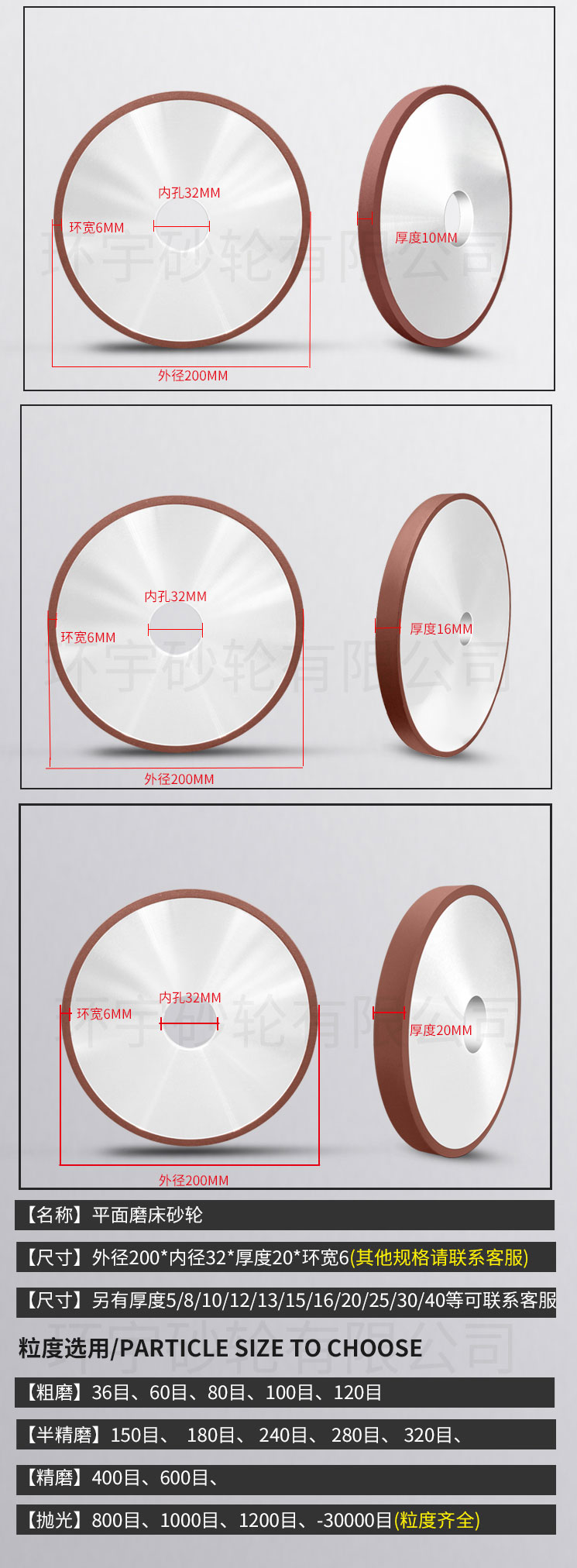 Đá mài kim cương hợp kim CBN: D200 x H10 x W5 x d32