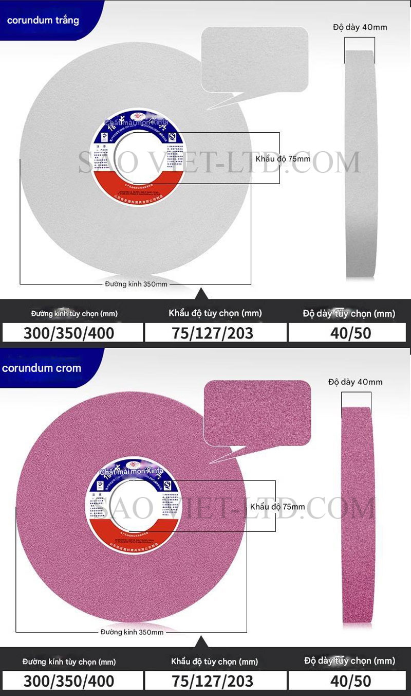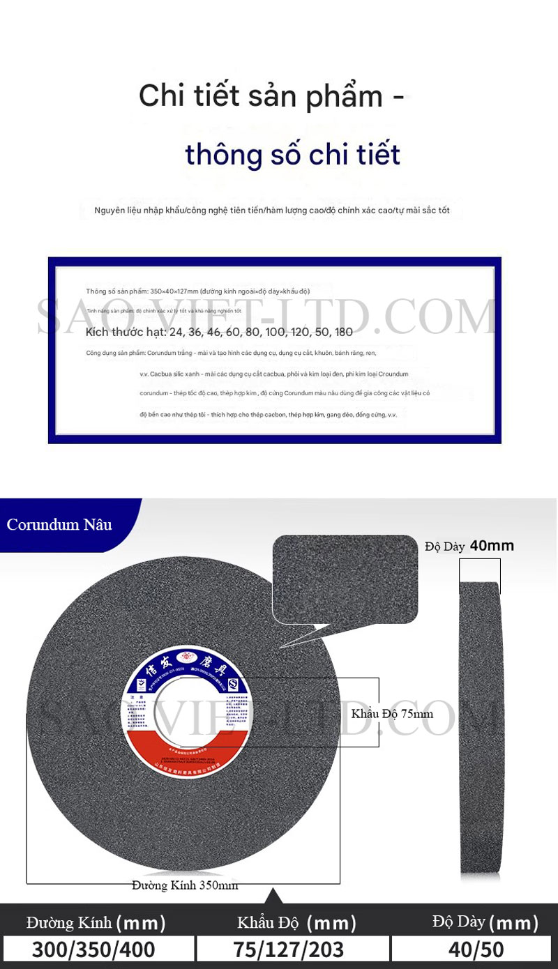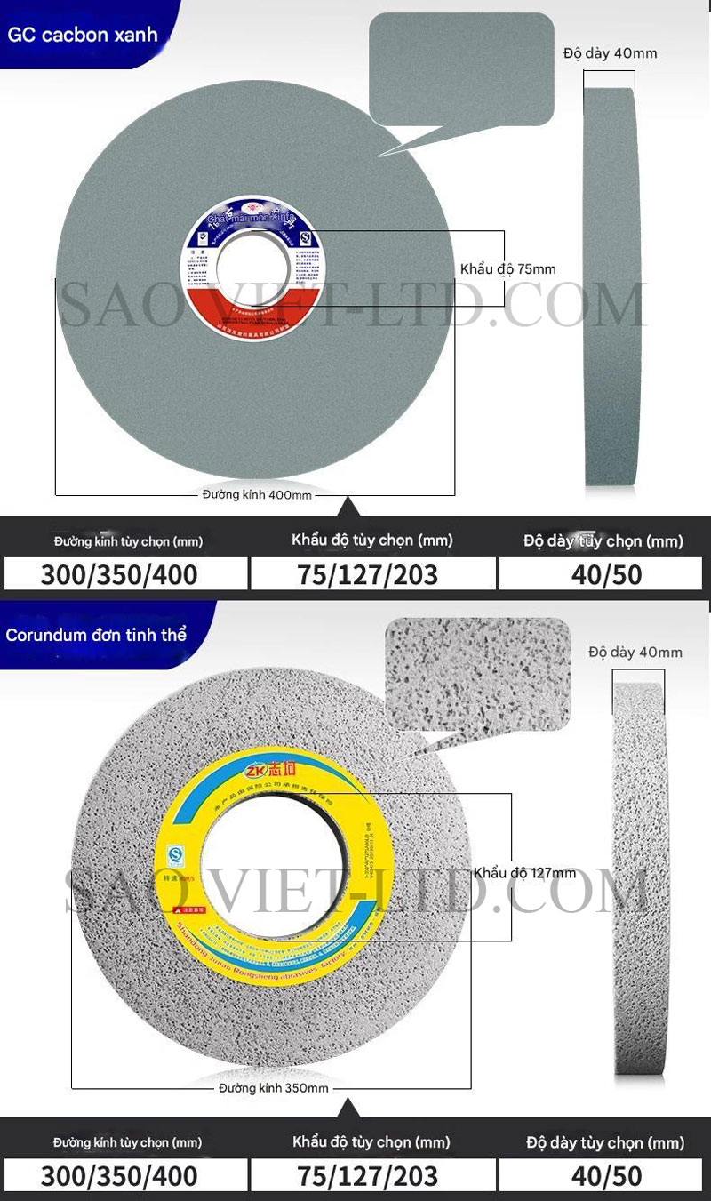 Đá mài hình trụ kích thước 350 x 40 x 127mm