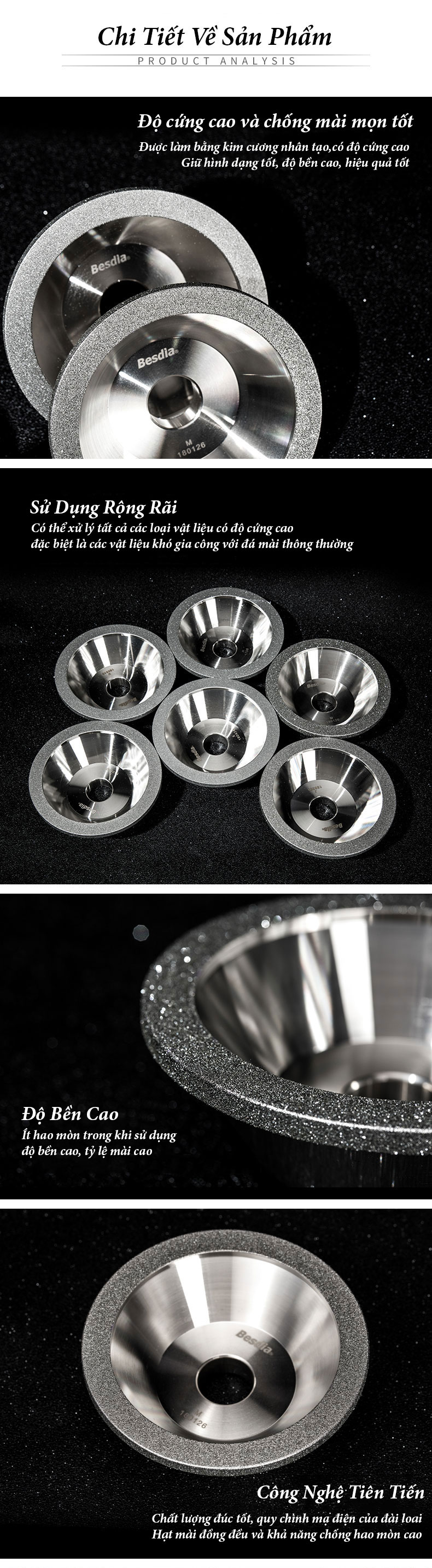 - Dễ dàng thao tác bằng các loại máy mài với công suất khác nhau. Có thể chịu được vòng quay rất lớn.