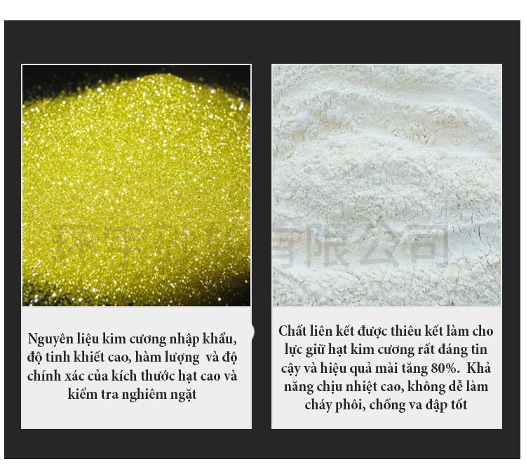 Sản phẩm này được sản xuất bởi nhà máy gốc Đài Loan. Quá trình mạ điện tiên tiến, các hạt cát đồng đều, các hạt kim cương nguyên chất được sử dụng và khả năng chống mài mòn cao.