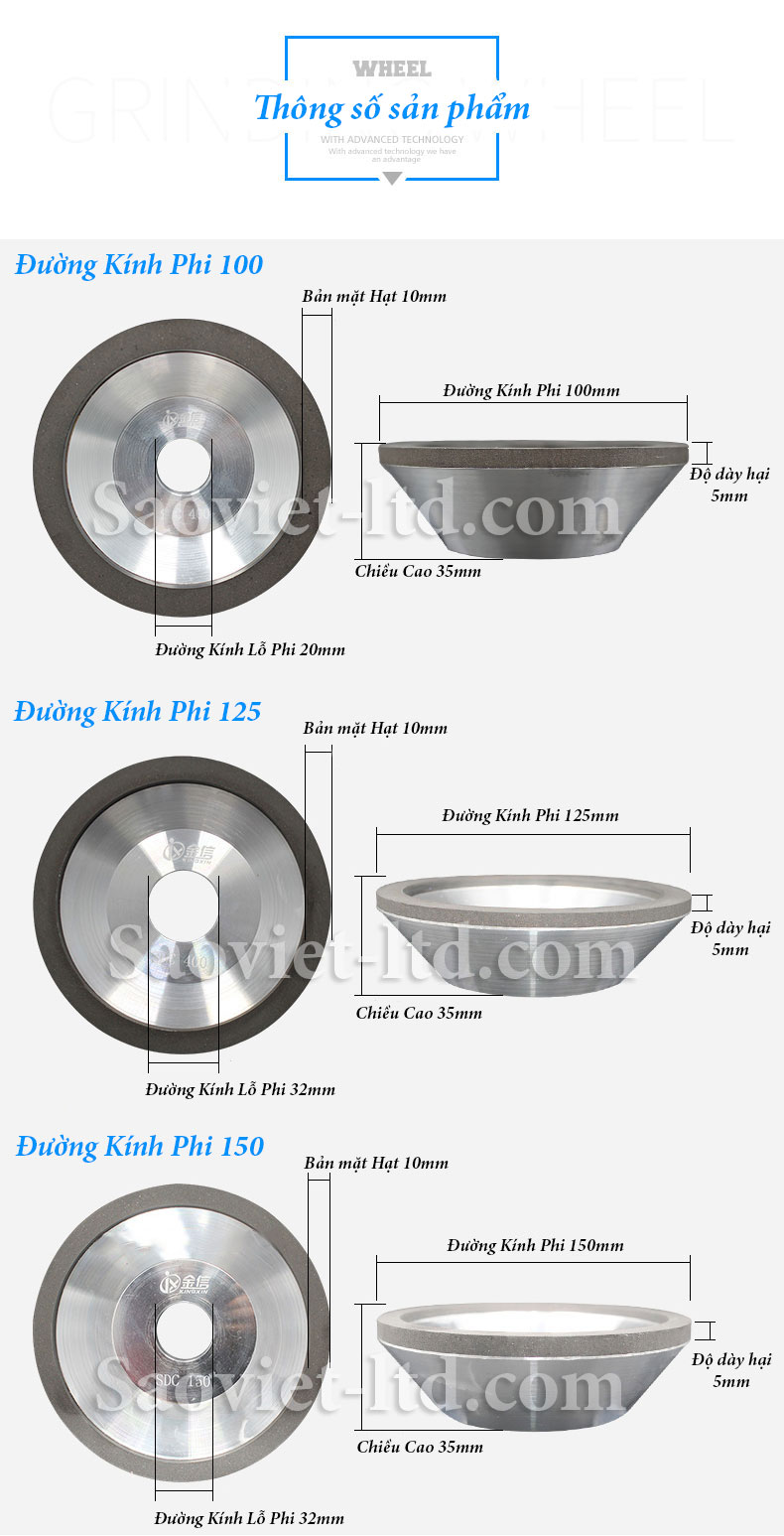 THÔNG SỐ KÍCH THƯỚC ĐÁ MÀI HỢP KIM CBN MẠ ĐIỆN
