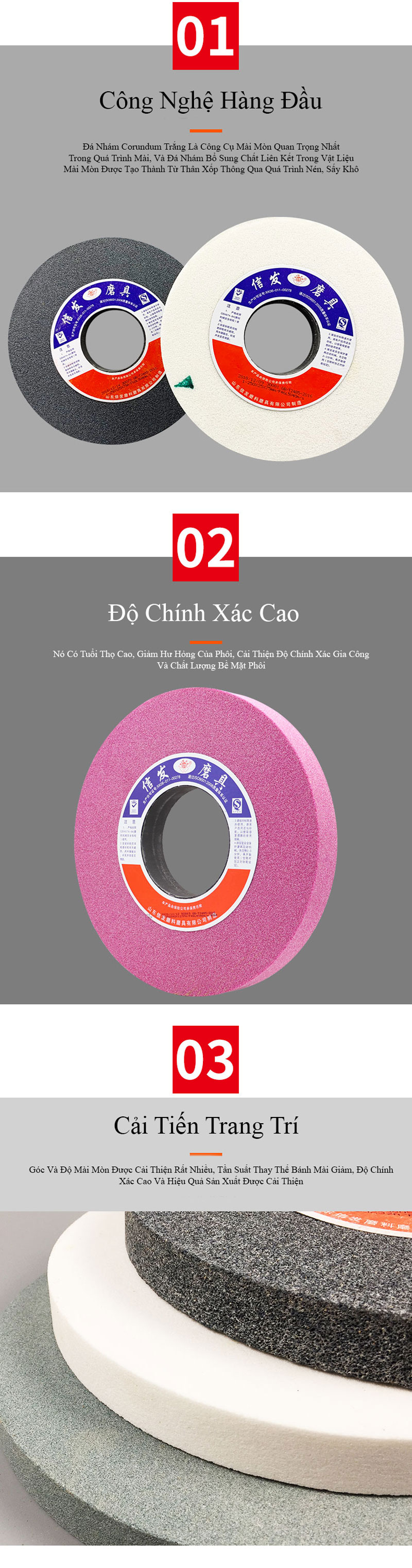 2. Corundum trắng (WA): thích hợp để mài các vật liệu như thép tôi, thép hợp kim, thép tốc độ cao, thép carbon cao và các vật liệu mài bánh răng và mài ren khác.