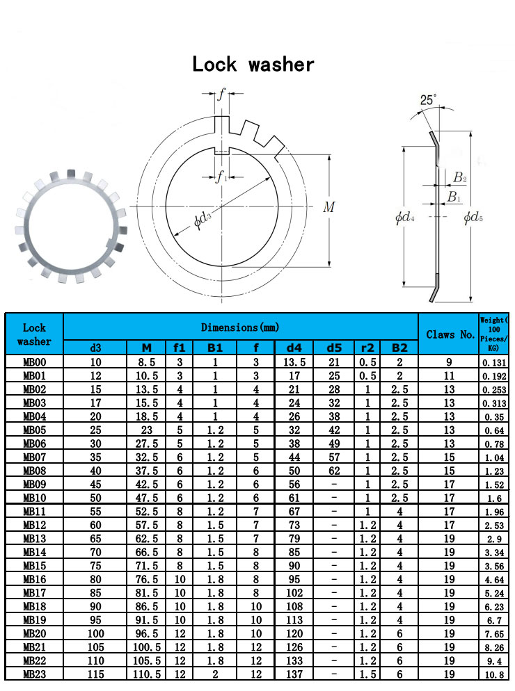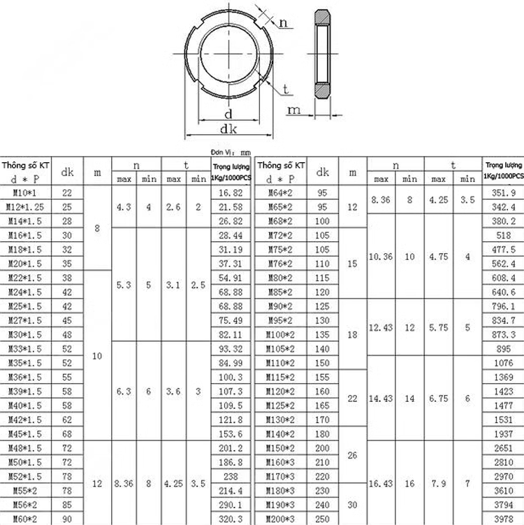 BẢNG THÔNG SỐ KỸ THUẬT ĐAI ỐC KHÓA LOCKWHASHER