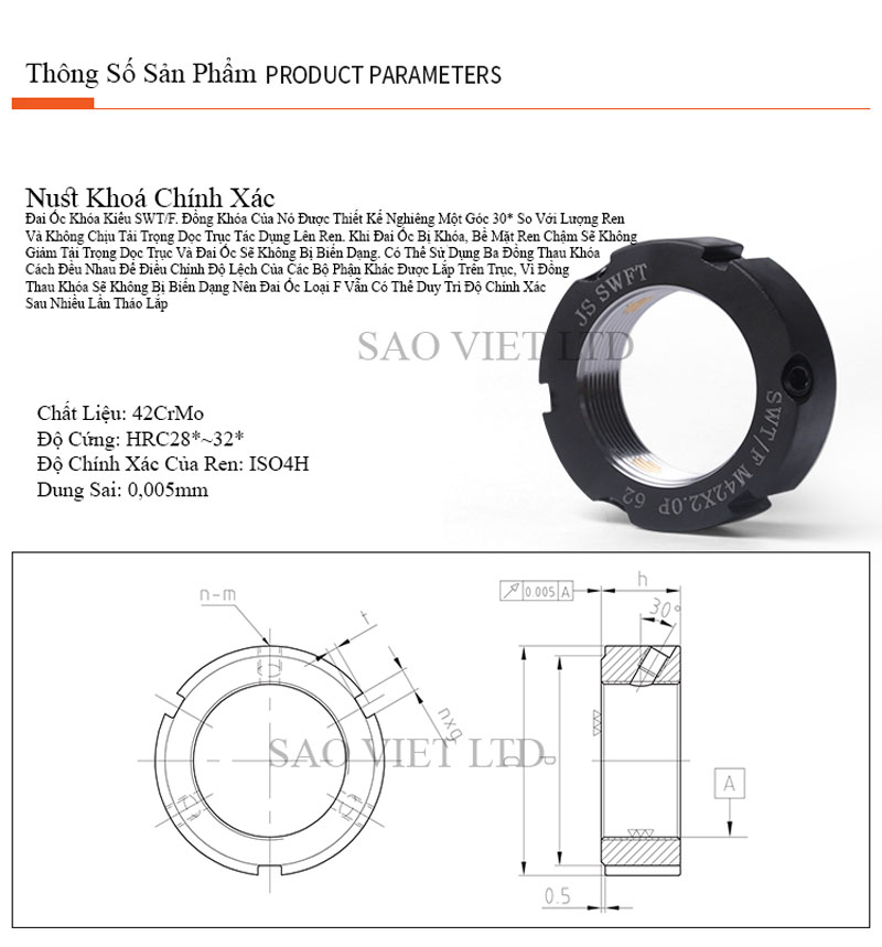 Tên Sản Phẩm: Đai Ốc Khóa Trục Chính Xác Kiểu F