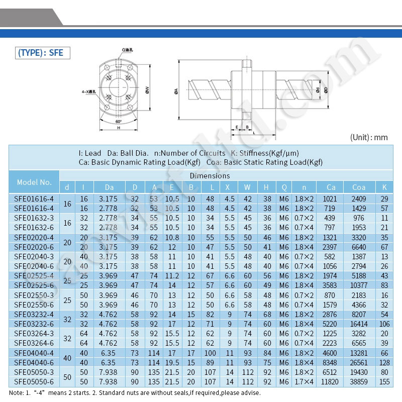 Đai ốc vít me bi kiểu SFE đường kính trục từ 12, 15, 20, 25, 30 .... đến 50,60 hoặc lớn hơn nữa tùy theo nhu cầu của quý khách hàng