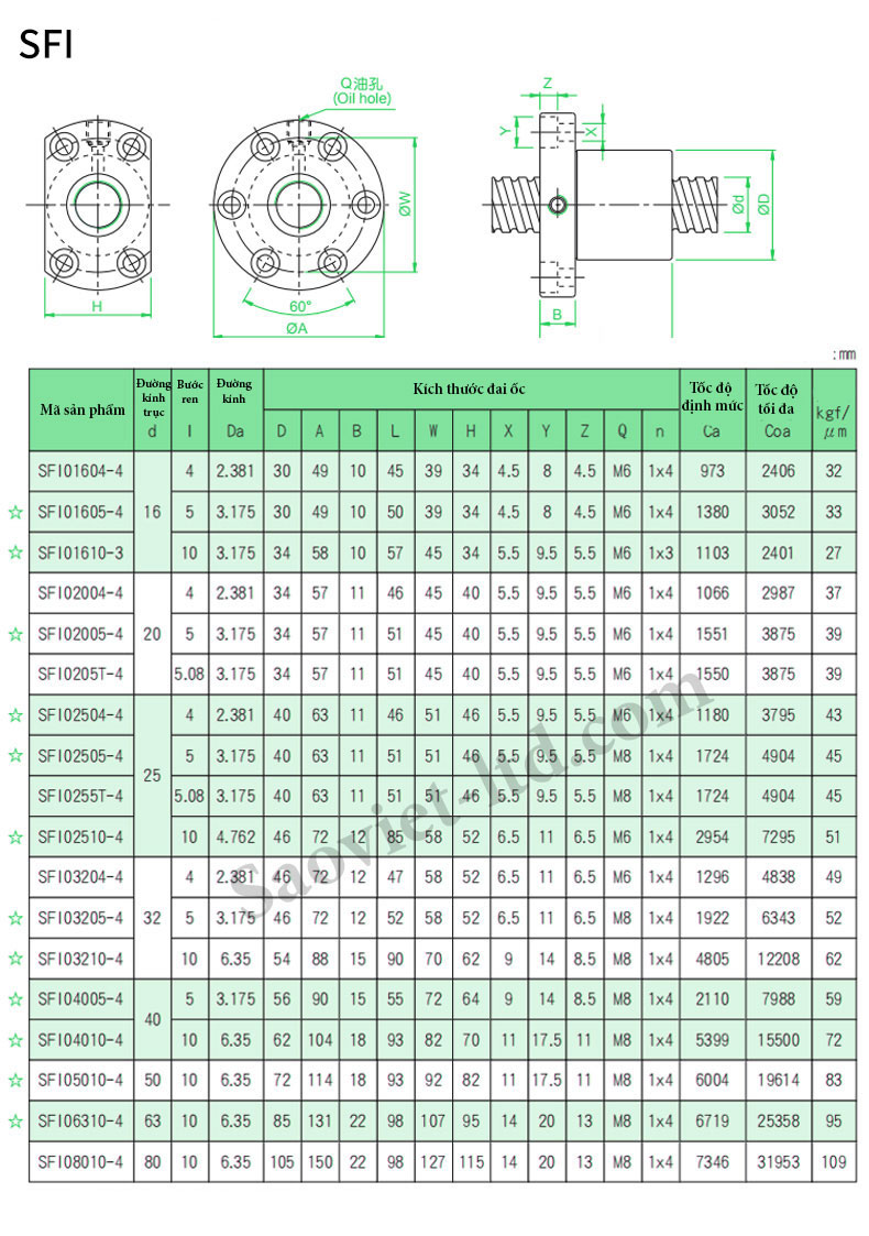 - Mã Sản Phẩm của đai ốc: TBI- Loại thông dụng: bước 16mm và bước 05mm
