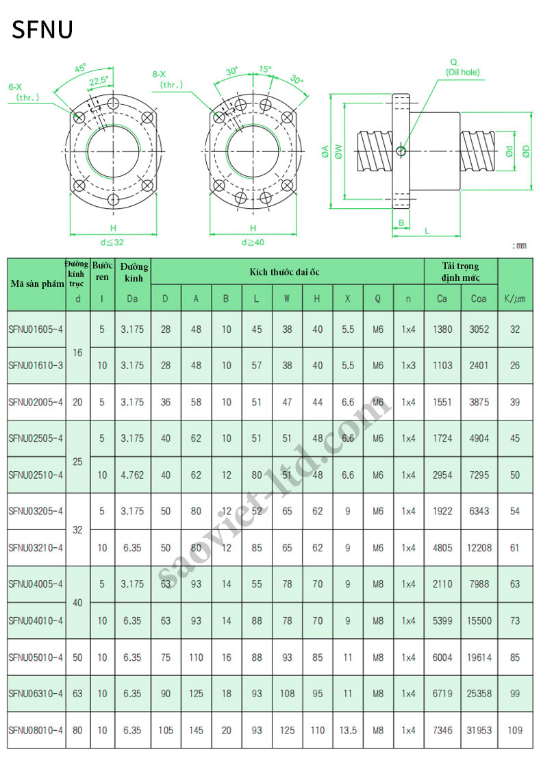 - Mã Sản Phẩm của đai ốc: TBI- Loại thông dụng: bước 16mm và bước 05mm
