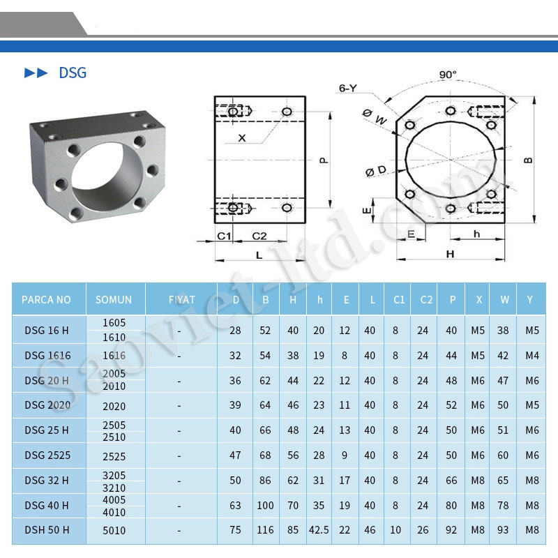 THÔNG SỐ CÁC LOẠI GỐI THƯỜNG DÙNG CHO TRỤC VÍT ME BI TBI SFU 1605 2005 2010 2505 3210 4010 2020