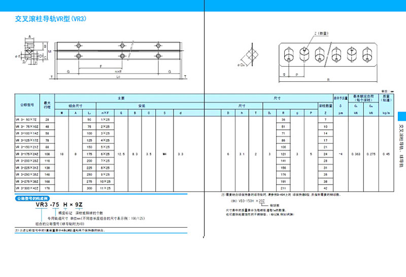 Bảng Thông Số Kỹ Thuật Dẫn Hướng Con Lăn Chéo Loại VR (VR3)