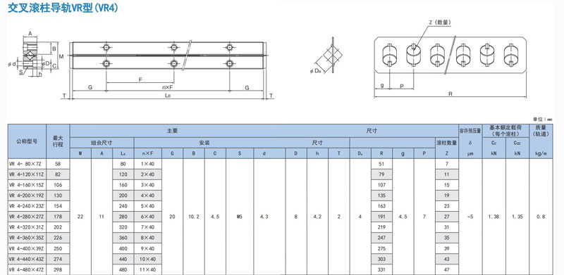 Bảng Thông Số Kỹ Thuật Dẫn Hướng Con Lăn Chéo Loại VR (VR4)