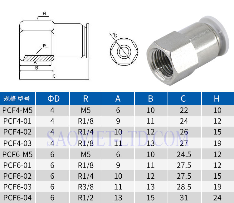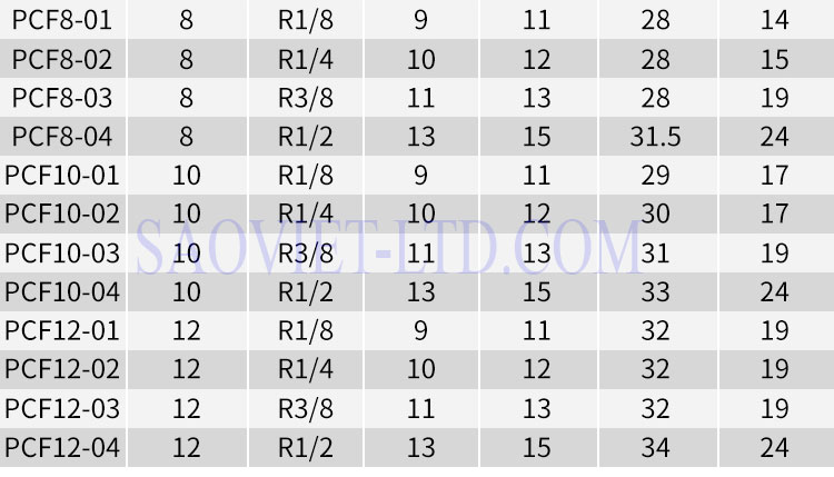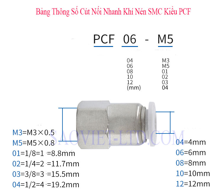 Model: Đầu Nối Nhanh Khí Nén SMC Kiểu PCF4, PCF6, PCF8, PCF10, PCF12