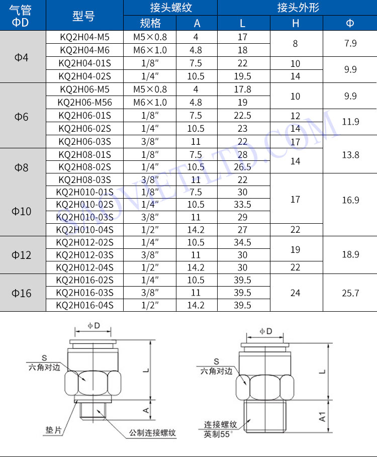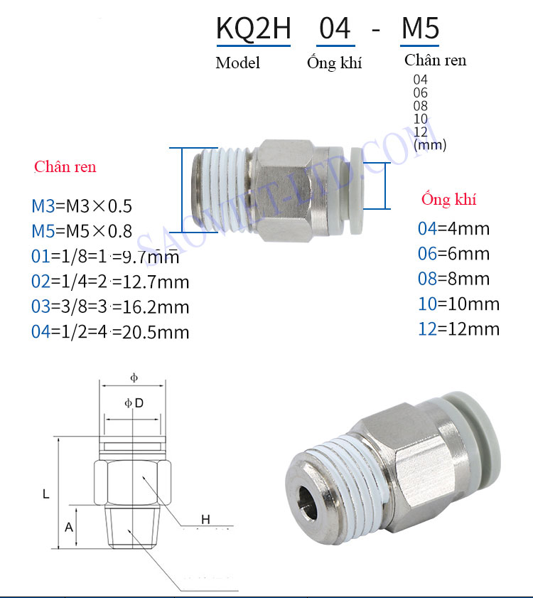 Model: Đầu Nối Nhanh Khí Nén SMC Loại KQ2H03, KQ2H04, KQ2H06