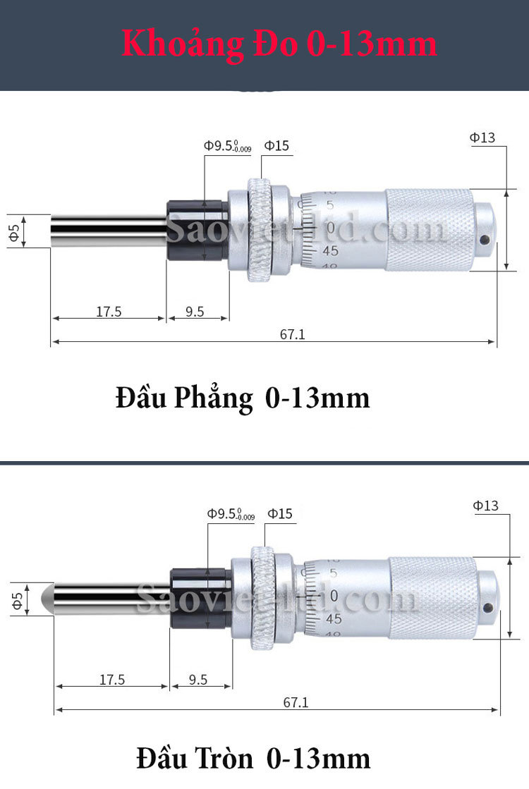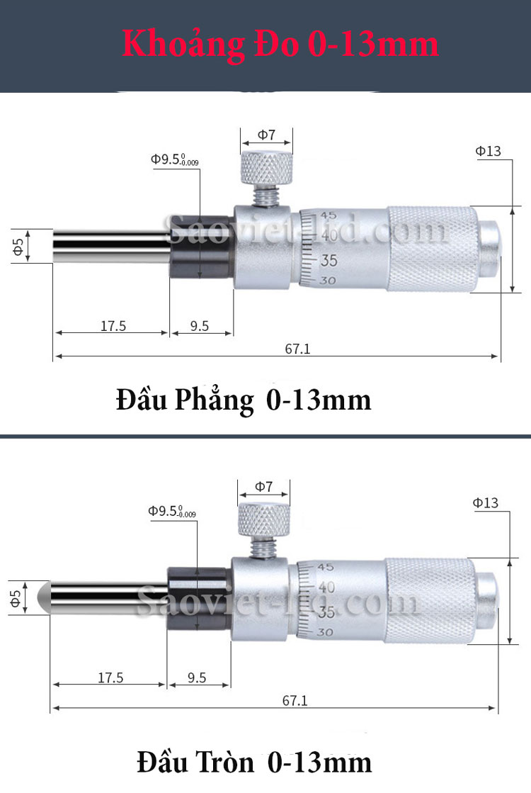 Khoảng đo từ 0-13mm, Giải đo 0,001mm