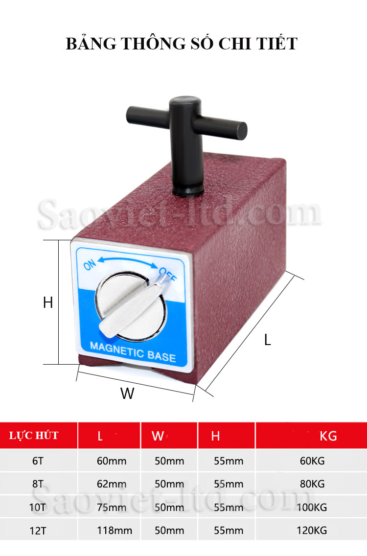 Kẹp chặt thiết bị lắp trên nó với mặt bàn bằng lực hút từ.Bộ chỉ thị cơ sở từ tính này có tính năng điều chỉnh tốt. Công tắc bật / tắt giúp dễ dàng đặt vị trí.Sản phẩm cho phép bạn gắn nó trên bề mặt hình trụ