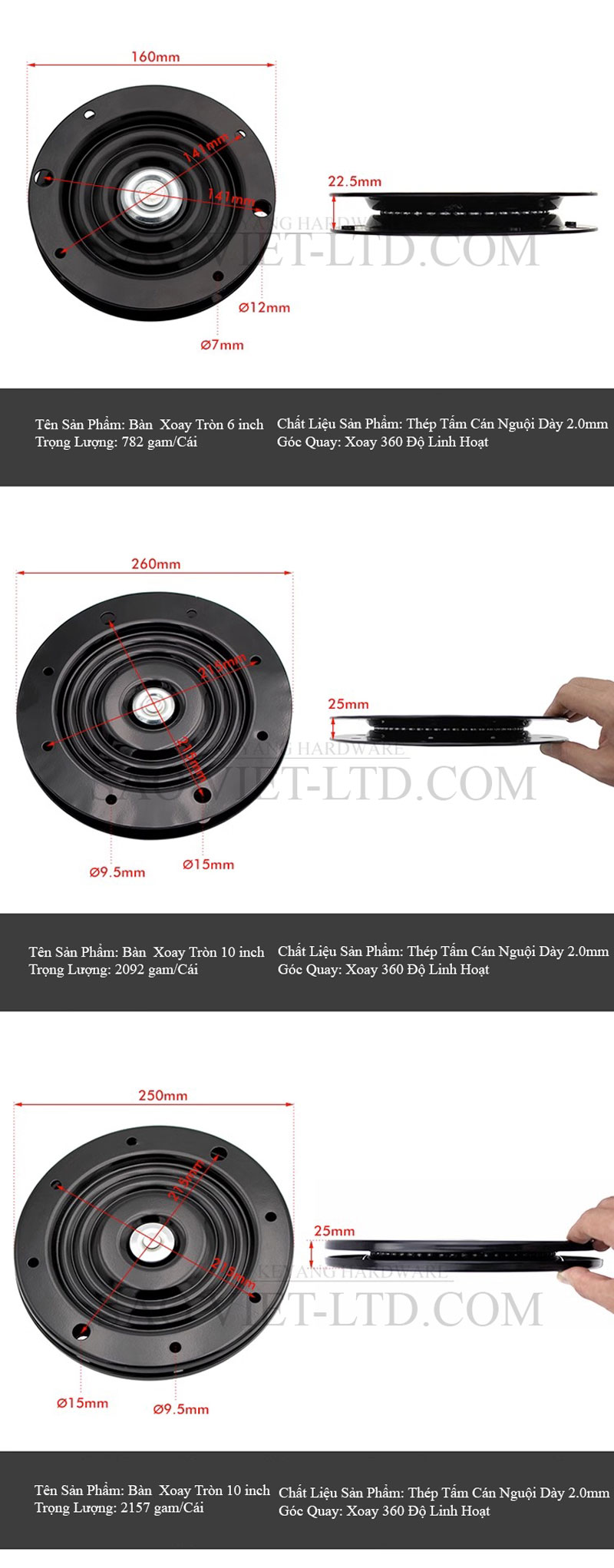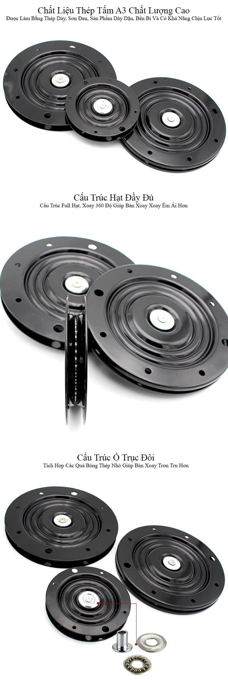 Bảng Thông Số Kỹ Thuật Đĩa Vòng Bi Mâm Xoay 360 Đế Tròn Đa Năng